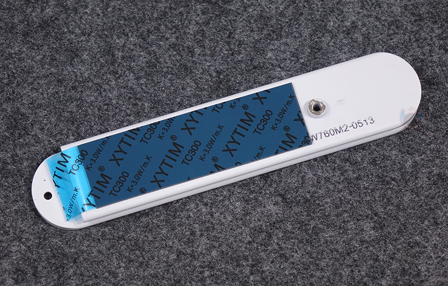 CPU 주변 전원부에는 발열해결을 위해 방열판(Heatsink)이 기본 장착되어 있으며, 개봉시에는 보호비닐이 부착되어 있습니다. 방열판 역시 화이트 색상을 베이스로 적용했으며, 한쪽에는 거울 같은 동그란 디자인을 확인할 수 있는데, 뒤에서 확인하겠지만, 작동 시 캐릭터 영상이 나오는 디스플레이죠. 방열판을 분리하면 안쪽에는 모스펫과 초크 부분에 발열을 해결할 수 있게 기본 써멀패드(Thermalpad)가 부착되어 있으며, 방금 언급했던 캐릭터 영상 디스플레이 장치도 확인할 수 있습니다. 전원부는 12+1+1 페이즈(Phase) 구성으로 총 14-페이즈이며, 전원부 컨트롤러(PWM) 칩셋은 Richtek사 칩셋이 적용되었고, Dr.MOS는 Vishay사 칩셋이 적용되었으며, 캡패시터는 Capxon사 제품이 사용되었습니다. 참고로, MAXSUN은 경쟁사들처럼 전원부 칩셋에 대해서 꺼려하지 않고, 투명하게 공개하는 걸로도 유명하죠. 그리고, CPU 보조전원(EPS)은 8핀과 4핀으로 적용되어 있습니다.