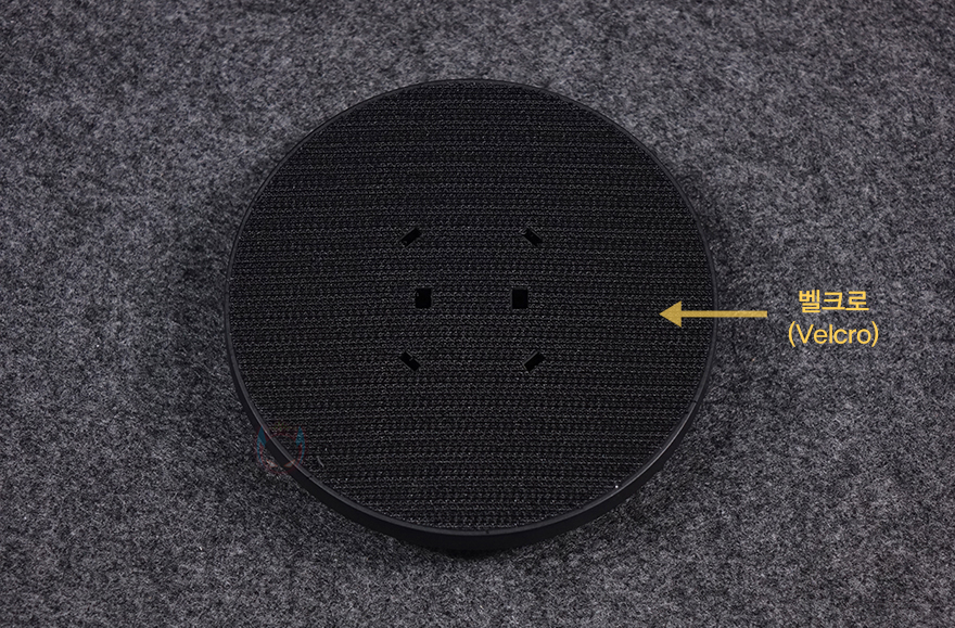 이번엔 본체 브러쉬 헤드와 연결되는 청소 브러시(Brush) 들을 살펴보는데, 먼저 패드를 교체할 수 있는 벨크로(Velcro) 브러시가 있습니다. 흔히 말하는 찍찍이죠. 이 벨트로 브러시에 부착할 수 있는 브러시 패드(Brush pad)는 천(Cloth) 재질의 흔히 말하는 걸레 패드가 있고, 스펀지 패드, 마지막으로 거칠 표면의 마치 수세미 같은 패드까지 총 3종이 기본 제공됩니다. 원하는 패드를 부착한 후에는 브러시 뒤면에 브러시 헤드와 연결되는 구멍이 있는데, 헤드와 구멍을 맞춰서 그냥 끼워주면 됩니다. 분리할 때는 구멍 바깥쪽에 있는 양쪽 돌기 부분은 누르면 쉽게 분리되죠. 이 밖에 바로 청소용으로 사용할 수 있는 일명 솔 브러시(Flat brush)도 3종으로 제공해 주는데, 면적이 큰 솔 브러시(Large flat brush), 작은 크기의 솔 브러시(Small flat brush), 틈새를 청소할 수 있는 뭉쳐있는 솔 브러시(Pointed-end brush)입니다.