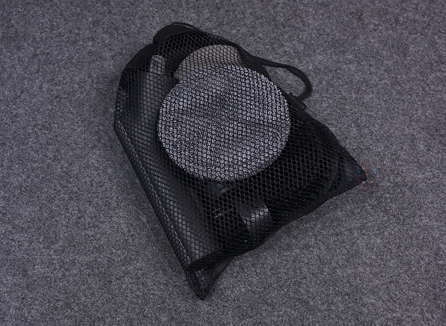끝으로, 제공되는 USB 충전케이블은 30cm 길이에 USB Type-A to C 인터페이스를 가졌으며, 충전 케이블을 본체와 연결하면 전원 버튼 위에 배치된 LED 인디케이터를 통해 충전 상태를 확인할 수 있습니다. 참고로 충전중일때는 LED 2개가 깜빡이고, 완충이 되면 LED 2개가 꺼집니다. 참고로, 완충하면 최대 90분 사용할 수 있습니다. 그리고, 제공되는 전용 파우치 같은 경우에는 긴 막대를 제외하고 모든 구성품을 함께 담아놓고 보관할 수 있습니다.