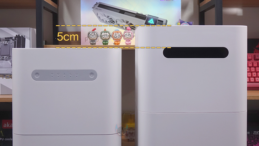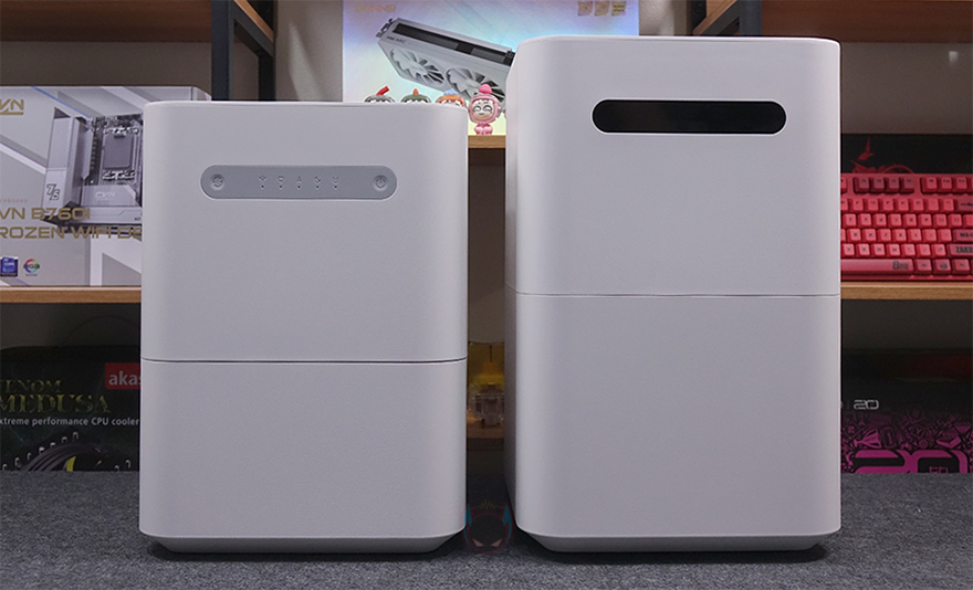 본격적으로, 스마트미(Smartmi) 자연기화식 가습기 3 라이트(Evaporative Humidifier 3 Lite)를 살펴보면, 일단 제품 박스에서도 잠깐 언급했듯이 외형은 이전 자연기화식 가습기 3과 유사합니다. 하지만, 크기에선 서로 비교했을 때 한눈에 봐도 자연기화식 가습기 3 라이트가 작아졌다라는 걸 알 수 있죠. 면적은 260x260mm로 동일하지만 높이에서 356mm로 약 50mm 정도 낮아졌습니다. 정확히는 하부에 물탱크 부분이 작아진 걸로 이전 모델에선 5L(리터) 용량을 지원했던 반면, 이번 모델에선 1L가 줄어든 4L 용량을 지원합니다.