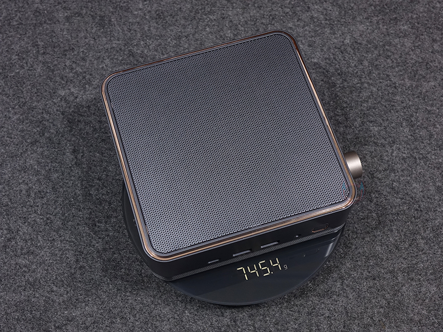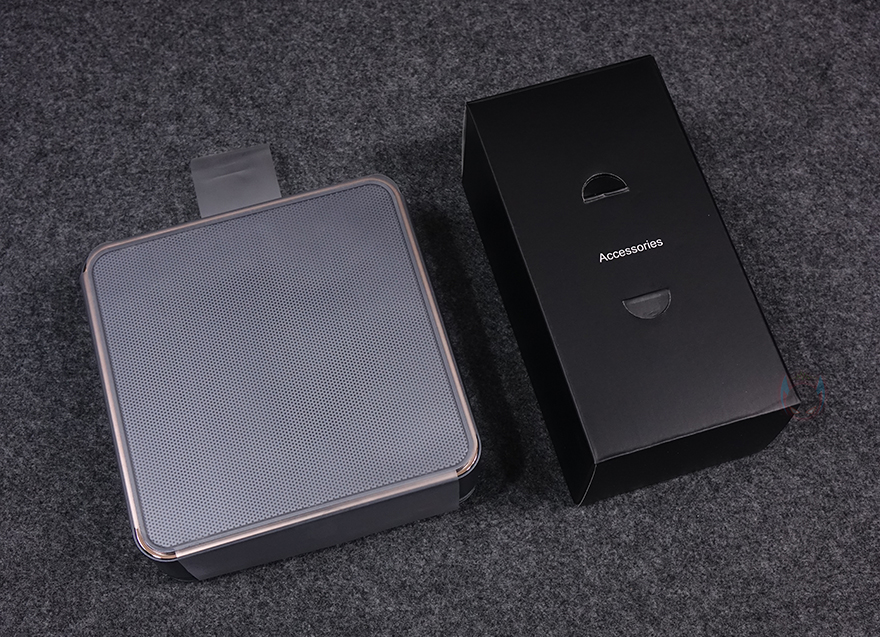 그럼, 본격적으로 CHATREEY F2M 미니PC를 살펴보는데, 전체적인 색상은 심플하게 메탈 그레이(Metal Grey) 색상계열이며, 포인트로 로즈골드(Rose Gold) 색상계열의 라인을 적용했습니다. 모서리 부분들이 라운딩모양이라 좀 더 고급스러운 느낌을 살립니다. 본체 무게는 베어본 옵션 기준 약 745g으로 휴대하는 데 있어서도 부담이 되지 않습니다. 참고로 크기는 147mmx147mmx52mm입니다.