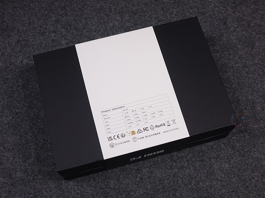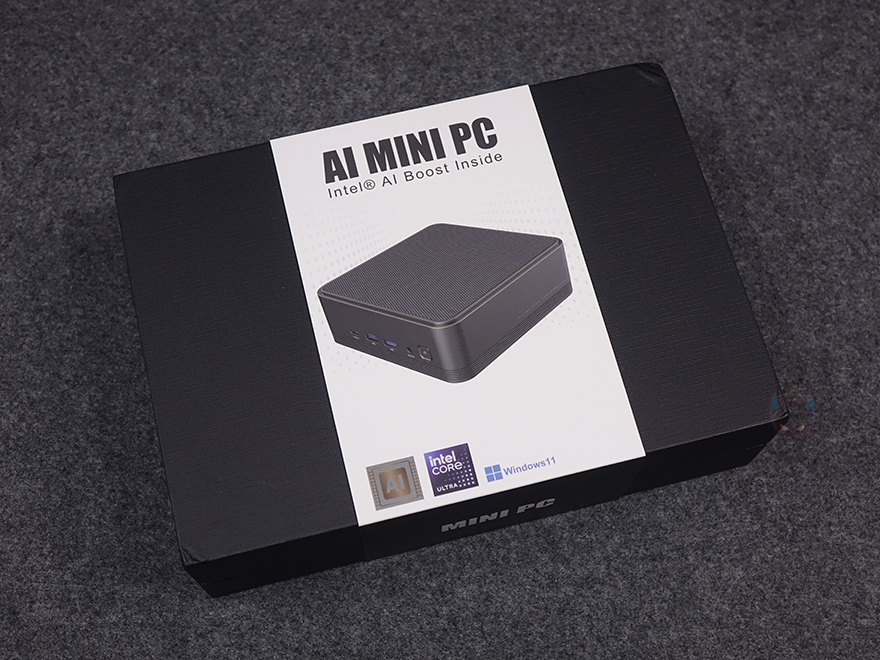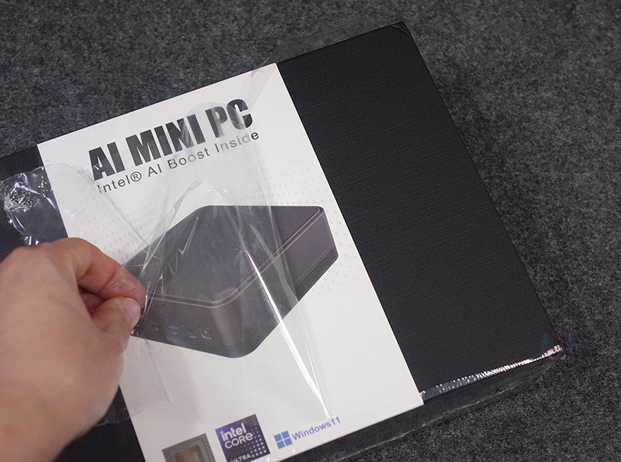 제품 패키지부터 살펴보면, 박스 전체까지 밀봉처리된 상태로 소비자입장에선 좀 더 판매 제품에 신뢰를 가질 수 있습니다. 그리고, 박스에는 패키징 밴드가 적용되어 있는데, 전면에 제품 이미지와 함께 AI 미니 PC라는 문구를 확인할 수 있는데, 인텔 메테오레이크 CPU부터 인공지능(Ai) 칩 NPU가 적용되었기 때문이죠. 인텔 코어 울트라 프로세서와 윈도우 11 운영체제 지원도 확인할 수 있으며, 밴드 후면에는 제품 옵션 구분 표기를 확인할 수 있습니다. 참고로, F2M 역시 기존의 CHATREEY 미니 PC 제품들처럼 베어본(No RAM, No SSD) 옵션부터 구매할 수 있습니다.