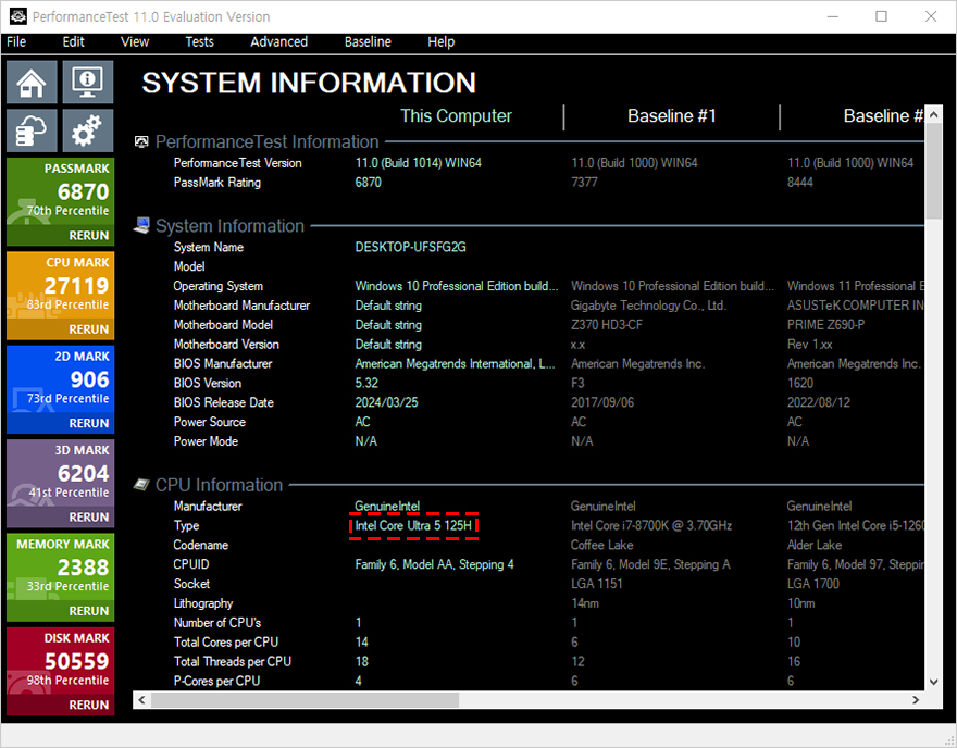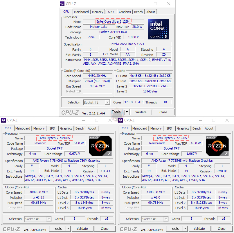 그럼, 이제 F2M 미니PC의 성능을 확인해 보는데, 앞서 언급했듯이 F2M 미니 PC에는 인텔 메테오 레이크 CPU 코어 울트라 5 125H가 탑재되었습니다. CPU-Z를 통해 쉽게 확인할 수 있으며, 내장 그래픽은 아크 그래픽스(Arc graphics)가 탑재되었죠. 시작에서 언급했듯이 인텔이 이런 CPU를 출시하게 된 계기에는 AMD 라이젠의 영향이 컸습니다. 그래서, 내장그래픽 성능을 먼저 향상시켰던 AMD의 라이젠 7735HS CPU와 이후 다음 세대인 라이젠 7840HS CPU로 비교를 해보고, 이들에 각각 내장된 라데온 680M과 라데온 780M 그래픽으로도 비교를 해보겠습니다. 참고로, F2M 미니 PC 같은 경우에는 DDR5 5600 MHz 클럭까지도 지원하기 때문에, 사용하는 메모리가 5600 MHz XMP 프로파일로 적용된 거라면 CMOS→Advanced →System Agent(SA) Configuration→Memory Configuration→OverClocking→Memory profile에서 설정하면 됩니다. 참고로, 비교 미니PC의 라이젠 7735HS는 4800 MHz, 라이젠 7840HS는 5600 MHz 클럭으로 적용되었습니다.