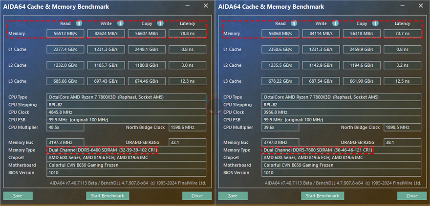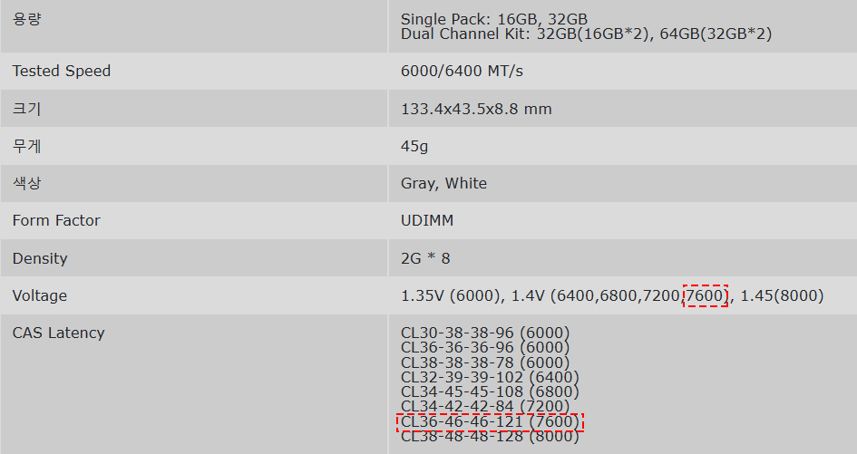끝으로, 실리콘파워 STORM RGB DDR5 메모리는 XMP 프로파일이 적용된 제품들로만 출시를 했는데, 최소 6000MHz 클럭부터 최대 8000 MHz 클럭까지 다양하게 출시되었습니다. 특히, 6400~7600 MHz까지는 1.4V 전압으로 모두 적용되었죠. 그래서, 리뷰에 사용된 6000 MHz 모델 같은 경우 동일한 1.4V 전압에서 7600 MHz 모델과 같은 램 타이밍 값으로 설정해 수동 오버클럭을 시도해 봤습니다. 결과는 쉽게 7600 MHz까지 클럭을 더 높일 수 있었고, 6400 MHz 클럭 때보다 좀 더 나은 성능 향상도 확인할 수 있었죠. 1.4V의 7600 MHz 클럭까지 적용되었으면, 최소 메모리 모듈이 하이닉스 A다이가 적용되었다고 짐작할 수 있어서, CPU와 메인보드만 받쳐주면 더 높은 오버클럭도 시도해 볼 수 있겠습니다.