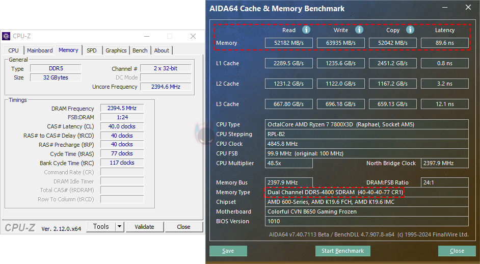 직접, 실리콘파워(SiliconPower) STORM RGB DDR5 메모리를 사용해보면, 일단 메인보드에 장착해서 전원이 켜지면 바로, 기본 RGB 모드의 라이트닝 효과를 확인할 수 있습니다. 그리고, 앞서 언급했듯이 메인보드 RGB Sync를 지원하기 때문에, 사용하는 메인보드에서 RGB Sync 프로그램이 있다면, 연동되어 더 다양한 RGB 모드로 전환할 수 있죠. 리뷰에 사용된 모델은 6400 MHz XMP 프로파일이 적용된 모델로 CPU-Z 프로그램을 통해 확인할 수 있으며, 기본작동클럭은 4800 MHz입니다. 그래서, 메인보드에 바이오스 CMOS에서 XMP 프로파일값을 불러오면 쉽게 6400 MHz으로 오버클럭 적용할 수 있죠.