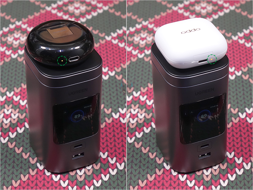 이번엔 Nexode 145W 20000mAh 파워뱅크의 주요 기능 중 하나인 무선 충전에 대해서 확인을 해보는데, 앞서 언급했듯이 Qi2 인증을 받은 제품으로 Qi2 무선 충전을 지원하는 외부 기기를 사용했을 시 최대 15W까지 충전을 지원합니다. 물론, Qi2 이하 그러니깐 이전 Qi 규격도 그대로 모두 호환이 되기 때문에, Qi 무선충전을 지원하는 외부 기기를 올려놓으면 그대로 충전이 진행됩니다. 다만, 조금 아쉬운 부분이라면, 무선 충전 시에는 스마트 디지털 디스플레이에 따로 표시를 안 해줍니다. 그래서, 무선 충전하는 외부 기기에서 LED 인디케이터나 스마트폰 무선 충전이라면 스마트폰 화면을 통해 충전 상태를 확인할 수 있죠. 그리고, 애플 맥세이프를 베이스로 하기 때문에 마그네틱 방식을 적용하고 있어서, 아이폰 같은 스마트폰 자체의 마그네틱 또는 케이스를 사용한 마그네틱 방식을 사용해서 충전할때는 거치대를 세워서 사용하면 스마트폰 화면뷰를 보면서 충전할 수 있습니다. 또한, 앞서 만난 130W, 200W 모델은 포트로만 충전 지원을 하기때문에 최대 충전할 수 있는 기기가 3대였다면, Nexode 145W 20000mAh 파워뱅크는 무선이 추가되어서 최대 4대까지 동시 충전이 가능합니다.