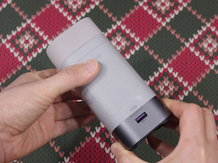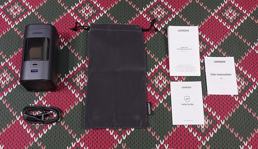 그럼, 본격적으로 유그린(UGREEN) Nexode 145W 20000mAh 파워뱅크를 살펴보면, 디자인은 스탠드형으로 앞서 만났던 Nexode의 130W, 200W 모델과는 완전히 다르고, 크기 정확히는 길이도 좀 더 짧습니다. 앞서 언급했듯이 130W와 200W 모델이 유선 충전 방식이었다면, 이번 모델은 무선 충전이 추가되었기때문에 디자인에서부터 차별화를 두고 있습니다. 무게는 약 555g으로 130W 모델보다는 약 73g 정도 무겁고, 200W 모델보다는 약 40g 정도 가볍죠. 무게감이 있지만, 휴대성에는 전혀 부담이 없습니다.