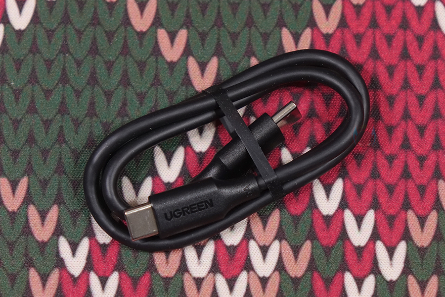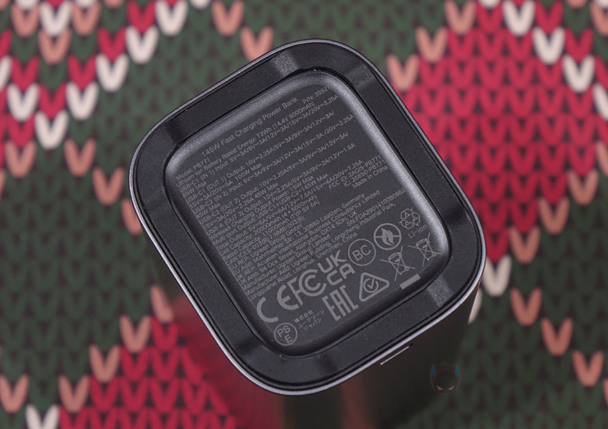 제품 후면에는 윗부분에 전원 버튼이 배치되어 있고, 맨 아래에는 USB Type-C 포트 1번이 배치되어 있는데, 전면 2번과 마찬가지로 1번도 입/출력 충전 모두 지원하며, 입력 그러니깐 Nexode 145W 20000mAh 파워뱅크를 충전할때는 최대 65W, 외부 기기를 충전할 때는 최대 100W 출력 충전 지원을 합니다. 그리고, 밑바닥 부분에는 미끄럼 방지의 안티-슬립(Anti-Slip) 패드를 부착하고 있는데, 받침대 역할도 함께 하기 때문에 모서리 부근으로 좀 더 높이가 있죠. 또한, 중앙 부분에는 앞서 제품 패키지에서 확인한 포트별 충전 지원 표기를 다시 확인할 수 있습니다. 끝으로, 기본 제공되는 충전 케이블은 USB Type-C to C 인터페이스에 50cm 길이를 가졌습니다.