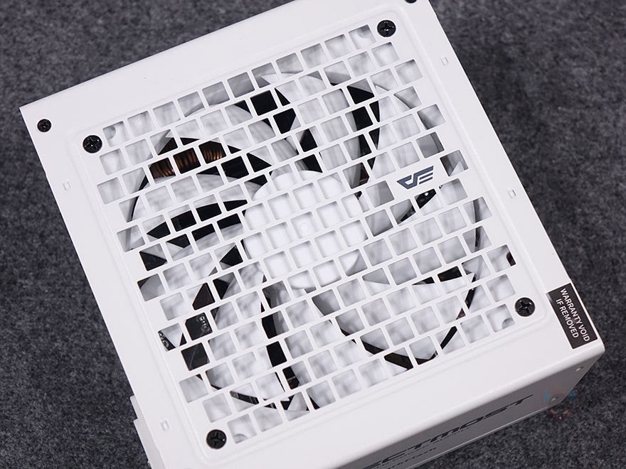 그럼, 다크플래쉬의 퍼펙트모스트 750W 80Plus 골드 풀모듈러 ATX3.1 화이트 파워서플라이를 살펴보면, 전반적인 외관 디자인은 자사의 앞전에 나왔던 UPMOST 모델과 유사합니다. 살펴보면서 하나씩 언급하겠지만, 좀 더 완성도를 높였다고 보면 되죠. 일단, 퍼펙트모스트 시리즈 역시 최근 ATX 파워시장의 트렌드 '컴팩트 사이즈' 따라 140mm 깊이로 출시했습니다. PC케이스에서 최대한 공간차지가 최소화되도록 했죠. 그리고, 상단에는 사각 패턴 디자인의 에어홀을 적용했는데, UPMOST 모델과 동일합니다. 다만, UPMOST 모델에서는 내부 팬이 외형 색상과 상관없이 블랙이었던 반면에, 이번 퍼펙트모스트에선 외형 색상에 맞춰서 팬 색상도 동일하게 맞추고 있습니다. 그래서, 화이트 제품에는 화이트색상의 120mm 팬이 적용되어 있죠. 그리고, 바깥쪽 후면부에는 벌집 모양의 에어홀 처리와 함께 에코팬 모드 On/Off 스위치가 적용되어 있는데, 흔히 말하는 제로팬 모드라고 보면 됩니다. 에코팬 모드를 켜면 일정 온도에 도달하기 전까지는 팬이 움직이지 않는 무소음으로 작동하고, 에코팬 모드를 끄면, 전원이 들어오는 동시에 팬이 작동하는 거죠.