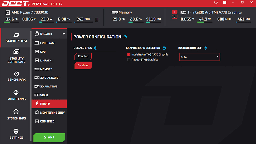 퍼펙트모스트 750W 80Plus 골드 풀모듈러 ATX3.1 화이트 파워서플라이는 750W 용량을 가졌습니다. 일반적으로 750W 용량까지는 메인스트림급 그래픽카드나 한단계 이상의 중급형 그래픽카드 사용의 시스템 기반에서 사용되죠. 그래서, AMD 라이젠 7 7800X3D CPU와 인텔 아크 A770 그래픽카드 기반에서 OCCT 프로그램을 통해서, 전력공급의 주요 전압인 12V와 5V의 출력상태를 확인해보는데, 대기상태의 Idle 상황과 100% 과부하 상태의 Load 상황에서 퍼펙트모스트 750W 80PLUS골드 풀모듈러 ATX3.1 화이트 파워서플라이의 12V와 5V 출력상태를 확인해 봤습니다. 먼저, 12V 같은 경우 Idle과 Load 상황 모두 각각 간간히 0.01V의 변동을 보이지만, 거의 움직임이 없는 일명 칼전압 수준상태를 보여줬고, Idle/Load 전체 변동폭도 0.05V로 작은 편입니다. 5V 역시 비슷한 결과로 Idle과 Load 각 상황에서 전압 움직임이 없는 칼전압 수준 상태를 보여줬으며, 전체 변동폭도 0.03V로 낮은 편이었습니다. 두 전압 모두 매우 안정적으로 시스템 전력공급을 해주는 거죠.