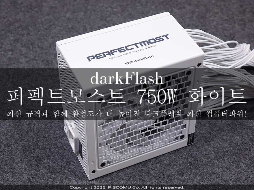 2025년 시작과 함께 Nvidia, AMD, 인텔 모두 차세대 그래픽카드를 출시 또는 출시예정을 앞두고 있습니다. 작년 하반기에 인텔/AMD 모두 차세대 CPU가 나왔기 때문에, 사실상 이제 최신 CPU와 그래픽카드로 조립 PC를 맞추려는 소비자들이 늘어나는 시기라 할 수 있죠. 그래서, CPU와 그래픽카드의 전력공급을 뒷받침해 주는 파워서플라이에 대한 관심이 그 어느 때보다 높습니다. 그리고, 이때를 맞춰 파워서플라이 제조사들도 신제품을 선보이고 있죠. 국내 PC 케이스 시장에서 인지도가 높은 다크플래쉬(darkFlash) 역시 이번에 파워서플라이 가이드 ATX 3.1 최신 규격에 맞춰서 최신 파워서플라이 제품을 출시했습니다. 바로, 퍼펙트모스(PMT) 시리즈. PC케이스만큼 자주 신제품을 선보이는 건 아니지만, 시기에 맞춰서 다크플래쉬하면 떠오르는 가성비로 이번에 퍼펙트모스 시리즈 파워서플라이를 선보인 만큼 관심이 높다 할 수 있습니다. 그래서, 이번 시간에는 다크플래쉬의 퍼펙트모스트 750W 80Plus 골드 풀모듈러 ATX3.1 화이트를 한 번 만나보도록 하겠습니다.