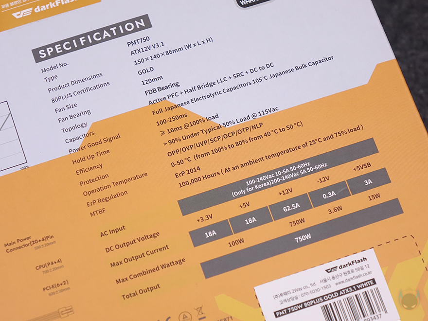 darkFlash 퍼펙트모스트 750W 80PLUS골드 풀모듈러 ATX3.1 화이트 - 파워 | 쿠팡