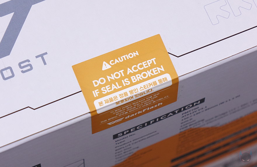 박스 후면에는 오른쪽에 제품의 기본 사양표기를 해놨는데, 크기부터 팬, 캐패시터, 보호회로 기술 등 상세하게 표기해놨습니다. 그리고, 바로 왼쪽에는 전력효율과 뒤에서 다시 언급하겠지만, 제로팬 모드를 지원하고 있어서 팬 작동 그래프 표기도 확인할 수 있으며, 아래에는 해당 모델의 케이블 길이 및 커넥터 지원 개수를 확인할 수 있죠. 또한, 방금 언급했던 박스 전체 밀봉처리 외에도 박스 오픈 부분에 동봉씰 적용도 확인할 수 있습니다.