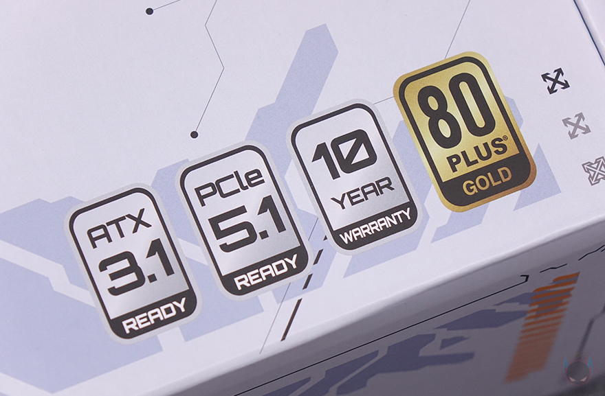 제품 패키지부터 살펴보면, 제품 박스는 전체 비닐밀봉처리까지 적용되어서 소비자입장에선 좀 더 판매 제품에 신뢰를 가질 수 있게 했습니다. 그리고, 박스 전면에는 모델명 퍼펙스모스트의 약자 PMT 문구과 함께 ATX 3.1 규격과 용량 표기, 풀-모듈러 문구를 확인할 수 있는데, 이번 퍼펙트모스트 시리즈는 750W와 850W 2가지 용량으로 국내시장에 출시되었으며, 모델명 아래 제품 이미지에서 미리 확인할 수 있듯이 색상도 화이트와 블랙 2가지로 출시되었죠. 참고로, 다음 시간에 850W 블랙을 만나볼 예정입니다. 그리고, 전면 아래에는 추가로 ATX 3.1 규격 표시 외에 PCIe 5.1 지원, 10년 무상보증기간, 80Plus 골드등급 표시를 확인할 수 있는데, 이번 퍼펙트모스트 시리즈는 한국 시장에 더 적극적인 지원을 해주고 있습니다. 원래 글로벌시장 기준으로 무상 보증시간은 5년인데, 국내시장에는 이보다 2배 긴 10년 무상 보증은 지원해주고 있죠.