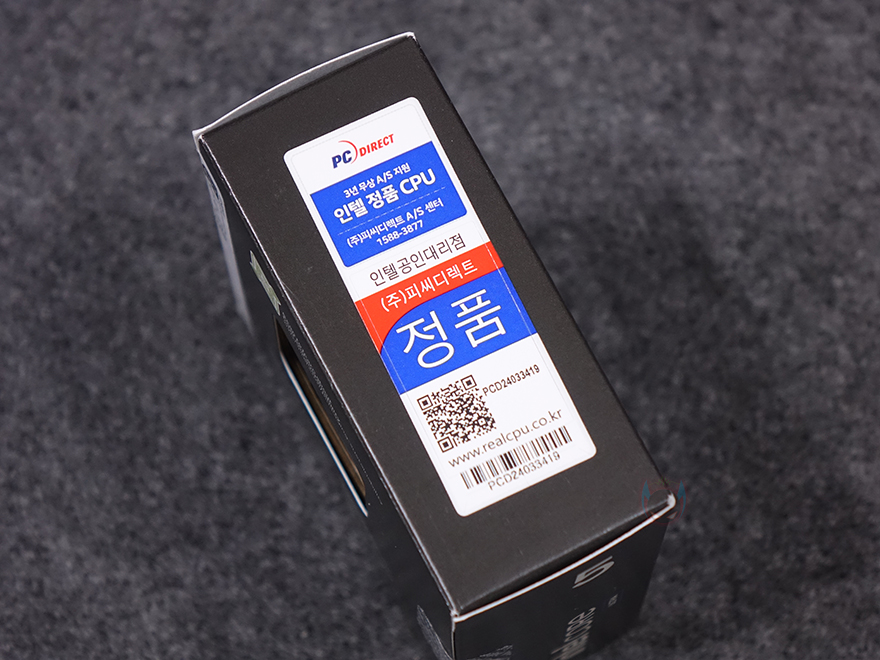 이번 인텔의 코어 울트라 시리즈2 CPU 대규모 체험단 진행에는 CPU와 함께 이를 지원하는 메인보드, 그리고 USB 메모리가 제공되는데, USB 메모리의 용도는 뒤에서 확인할 수 있으며, 필자가 체험할 CPU는 코어 울트라5 시리즈2 245K로 오버클럭 지원의 K버전과 미지원의 Non-K까지 포함 전체 코어 울트라 시리즈2 CPU 중에서 가장 중간에 위치하는 모델이라 할 수 있습니다. 그럼, CPU 패키지 박스부터 살펴보는데, 박스 전면에는 인텔 코어 울트라 표기와 함께 245K 모델 구분 스티커를 부착해놨으며, 오버클럭 지원을 의미하는 언락표시도 확인할 수 있습니다. 참고로, 인텔은 오버클럭 지원 CPU에는 기본 쿨러가 제공되지 않죠. 박스 후면에는 내부에 포장된 CPU 실물을 볼 수 있게 노출되어 있으며, 측면에는 국내 인텔 CPU 공식수입사 3곳 중 1곳인 피씨디렉트 정품 스티커와 함께 정품인증 코드를 확인할 수 있습니다.