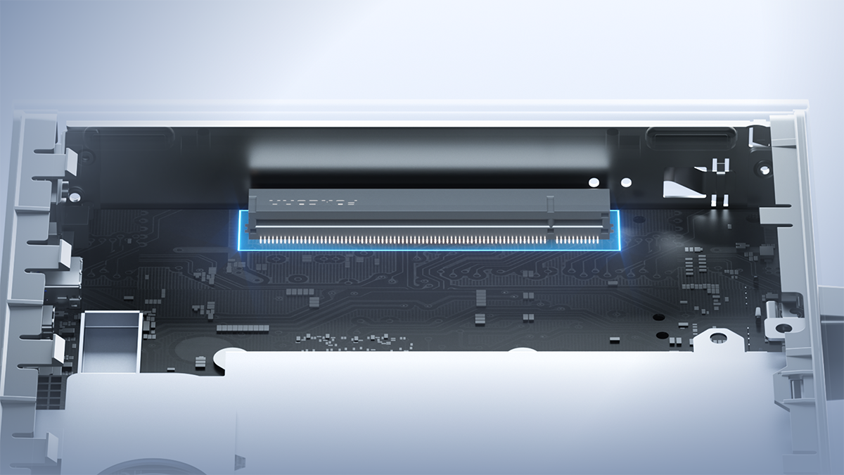 이 외에도 미니PC 최초로 80Gbps 전송속도를 지닌 USB 4.0 V2 포트를 후면에 2개 적용했으며, 전면에도 USB 4.0 포트 2개를 적용했다. 또한, 후면 I/O 포트에는 10GbE 듀얼 팬 포트와 8K@60Hz 해상도까지 지원하는 HDMI 포트를 적용했으며, 내부에는 1슬롯의 PCIe 4.0x16 배속 슬롯을 갖춰 외장 카드를 추가 장착할 수 있게 지원한다. 그리고, M.2 SSD 역시 PCIe 4.0x4 규격으로 듀얼 슬롯을 갖춰 최대 8TB 용량을 갖출 수 있게 지원한다.
