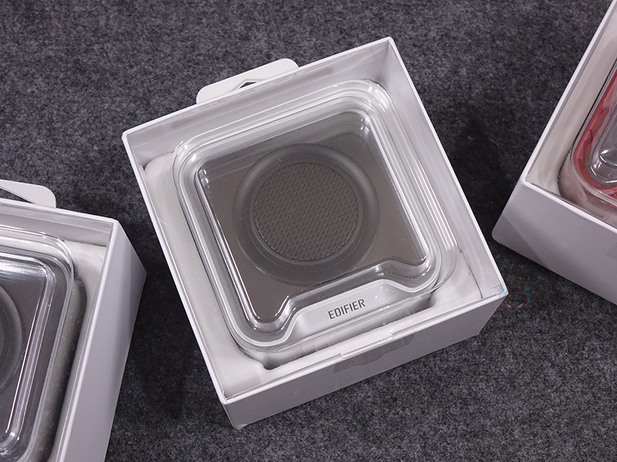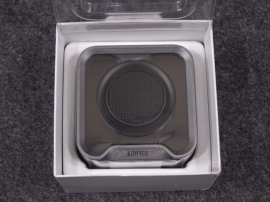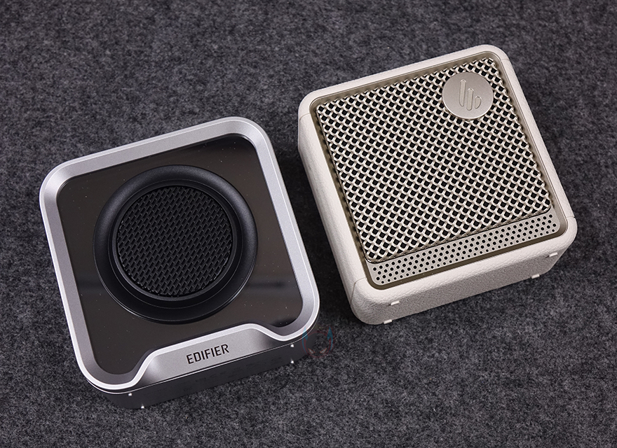 좀 더 자세히 살펴보면, 전면에는 Q 시리즈 특유의 미러 디자인(Mirror design)과 함께 중앙에 유닛 부분 그릴 디자인을 적용하고 있으며, 유닛은 43mm 크기의 풀-레인지(full-range)로 앞서 주요 특징 표기에서 확인했듯이 네오디뮴 자석 유닛입니다. 그리고, 아래에는 EDIFIER 로고를 새겨놨죠. 후면에는 저음을 보완할 수 있게 55mm 크기의 패시브 라디에이터(passive radiator)를 적용하고 있으며, 크기가 작은 만큼 앰프는 당연히 고효율의 D-앰프로 구동됩니다.