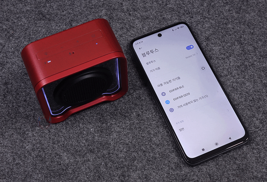 에디파이어(Edifier) QS20 포터블 스피커를 사용해 보는데, 전원은 전원버튼을 1.5초 이상 누르면 켜집니다. 전원이 들어오는 동시에 Q 시리즈 특유의 전면 조명효과도 바로 확인할 수 있죠. 참고로, 조명모드 버튼을 누르면 6가지 모드로 전환할 수 있는데, 이건 버튼 기준이고, 총 모드 개수는 12가지로 뒤에서 확인하겠지만, 앱에서 16가지 모드를 다룰 수 있습니다. 그리고, QS20은 블루투스 연결방식만 지원하는데, 전원을 켰을 때 자동으로 페어링 모드가 작동하지만, 만약 작동하지 않는다면, 볼륨조절 +/- 버튼을 1.5초이상 누르면 됩니다. 블루투스 연결은 일반적인 페어링 연결과 동일하게 연결할 기기에 블루투스 설정에서 기기 검색을 통해 'EDIFIER QS20'이 검색되면 선택해서 연결해 주면 됩니다. 참고로, 1개의 기기에 QS20을 최대 2대 연결할 수 있습니다. 이는 다시 말해, 스테레오 모드도 지원한다는 거죠. 스테레오 모드는 뒤에서 다시 언급하겠습니다.