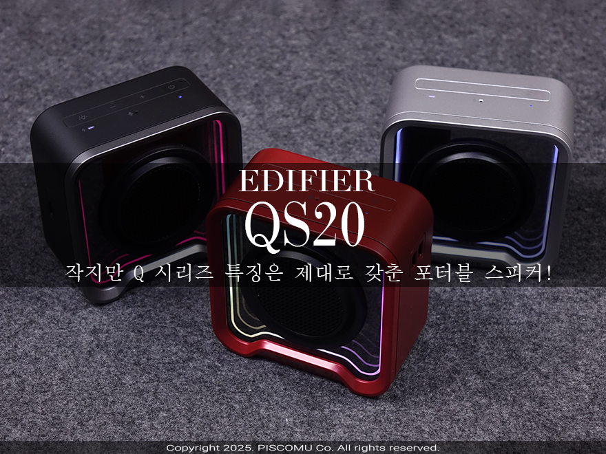 글로벌 음향기기 전문업체이자 국내 소비자들에게는 가성비 스피커 브랜드로 잘 알려진 에디파이어(Edifier)에는 다양한 제품 라인업을 갖추고 있죠. 그중에서도 Q 시리즈는 에디파이어에서 최근 데스크 인테리어에 관심을 가지는 소비자를 겨냥해 새롭게 갖춘 라인업으로 QR65 스피커를 시작으로 점점 확대되고 있습니다. 그만큼 또 하나의 라인업을 소비자들에게서 확실히 자리잡았다라는 거죠. 올해만 Q 시리즈에 3개의 모델이 출시했는데, 앞서 만났던 QR30(https://piscomu.com/315064), QD25(https://piscomu.com/315140), 그리고 오늘 만나볼 현재까지는 Q시리즈의 막내 모델입니다. 바로, QS20이죠. QS20은 QD25와 마찬가지로 휴대성을 가진 포터블 스피커로 출시했습니다. 그럼, 에디파이어의 QS20은 어떤 모습을 가졌는지 한 번 만나보도록하죠.