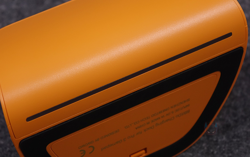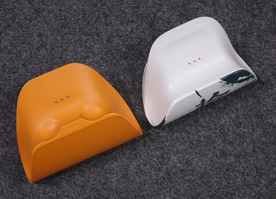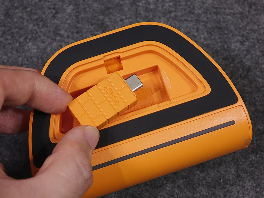 이번 Pro 3 블루투스 게임패드에 새롭게 추가된 충전독(Charging dock)은 앞서 잠깐 확인한 Ultimate 시리즈의 충전독과 유사한 디자인을 가졌지만, 서로 호환은 되지 않습니다. 그리고, 크기도 좀 더 Pro 3가 크죠. 이 외에는 게임패드와 충전 연결되는 방식은 포고핀으로 동일하고, 전면 맨 아랫부분에 충전상태를 확인할 수 있는 LED 램프-바, 밑바닥부분에 패드 부착과 무선 2.4G 수신기가 수납되는 공간도 동일합니다. 수신기는 USB-C 인터페이스 연결방식이고, 디자인은 기존과 동일한 벽돌모양입니다.
