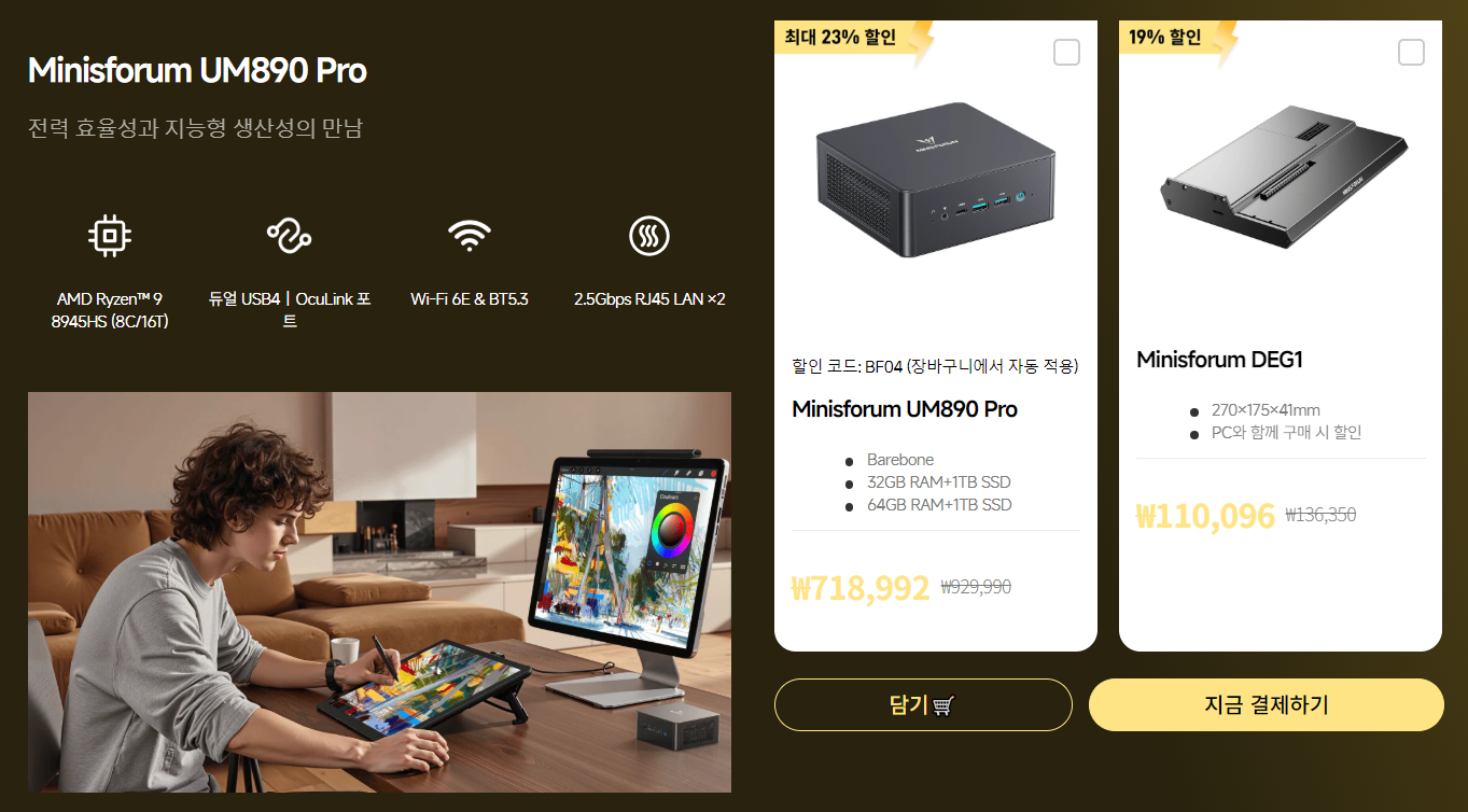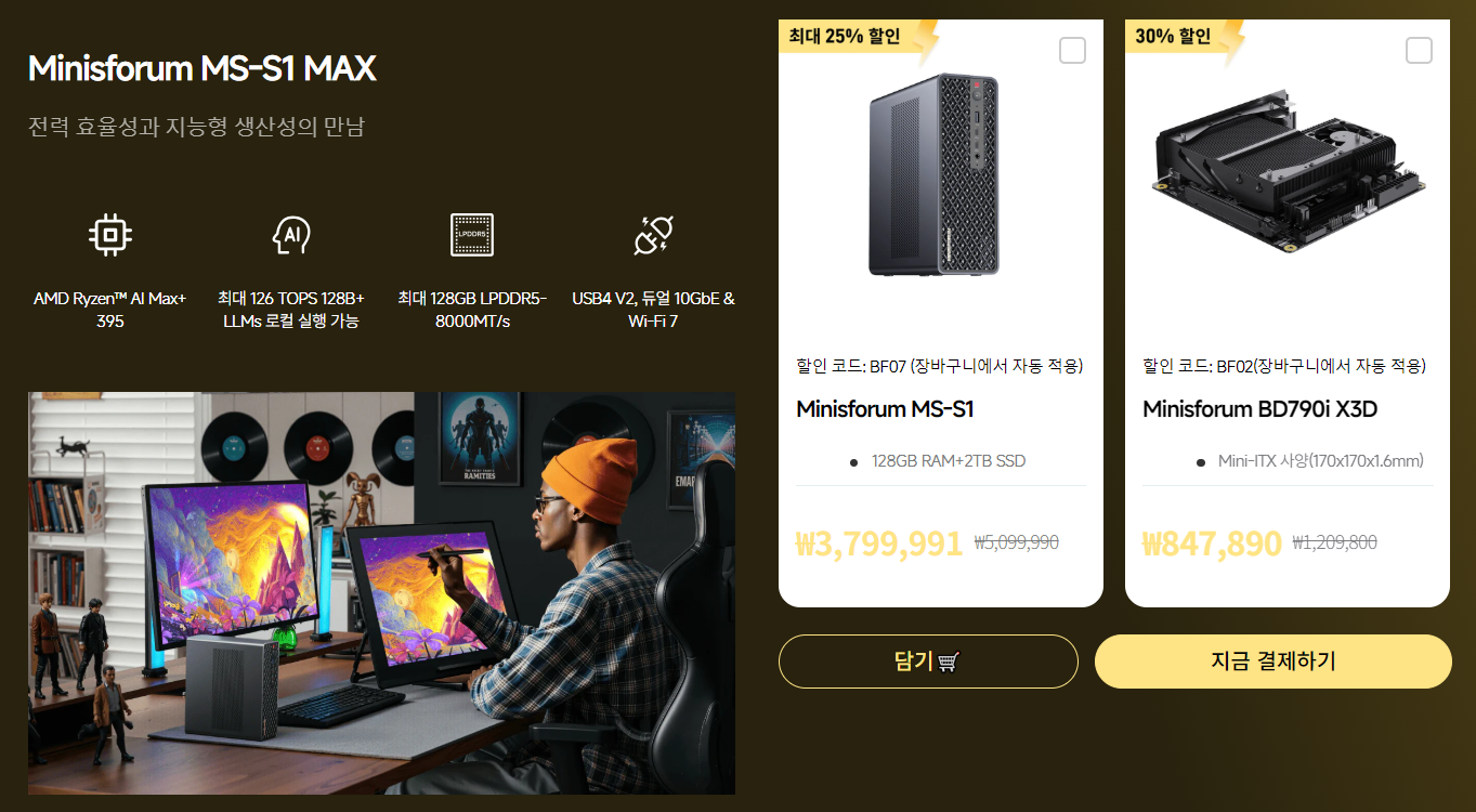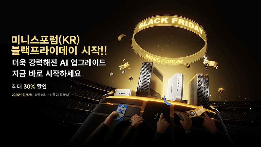 차별화된 미니PC로 글로벌 시장에서 인정받고 있는 미니스포럼(Minisforum)이 한국 시간으로 11월 14일부터 28일까지 최대 30% 할인의 블랙프라이데이 특가 행사를 시작한다. 이번 행사는 각 나라별 미니스포럼 공식 사이트에서 진행되며, 한국 역시 미니스포럼 코리아 공식 사이트에서 진행된다. 특히, 이번 행사에는 가격대별로 3%, 5% 추가 할인을 해주는 동시에 선착순으로 목베개와 게임패드를 사은품으로 증정해주고 있다.
