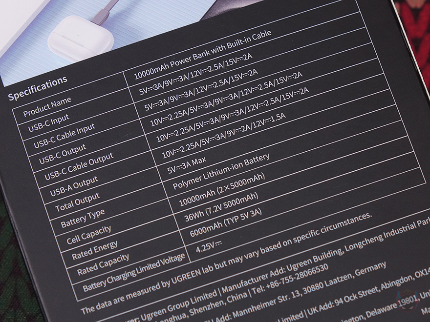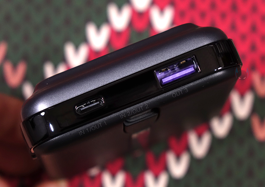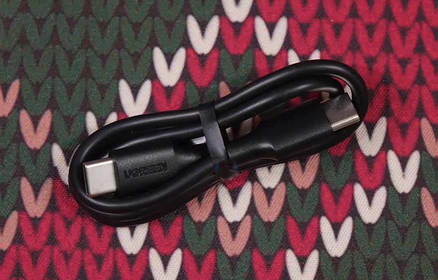 특히, 스크린 부분과 같은 위치에 양쪽 측면에는 Uno 시리즈 충전기와 비슷한 디자인으로 헤드셋을 연상케 하는 디자인을 적용했으며, 오른쪽 측면에 전원버튼이 적용되어 있습니다. 그리고, 전원 버튼과 같은 위치에 오른쪽 측면에는 제품 박스에서 확인했던 기본 사양표기를 다시 확인할 수 있죠. 제품 상단에는 USB 충전 포트 2개가 배치되어 있는데, USB 타입 C 포트와 타입 A 포트로 타입C 포트는 입출력을, 타입A포트는 출력만 지원합니다. 참고로, 타입C 포트는 최대 30W, 타입A 포트는 최대 33W를 지원하죠. 그리고, 제품 후면에는 가운데를 가로지르면서 케이블이 내장된 걸 확인할 수 있는데, 케이블은 손가락으로 들어 올리면 쉽게 뺄 수 있으며, 홀더 부분에 수납될 때는 인터페이스 부분은 마그네틱 방식으로 적용되어 있습니다. 케이블 길이는 약 11cm이고, 연결 인터페이스는 USB-C로 역시 입출력 모두 지원하고 최대 30W 지원합니다. 끝으로, 기본 제공되는 USB 충전 케이블은 양쪽 모두 USB-C 인터페이스를 가졌고, 길이는 50cm입니다.