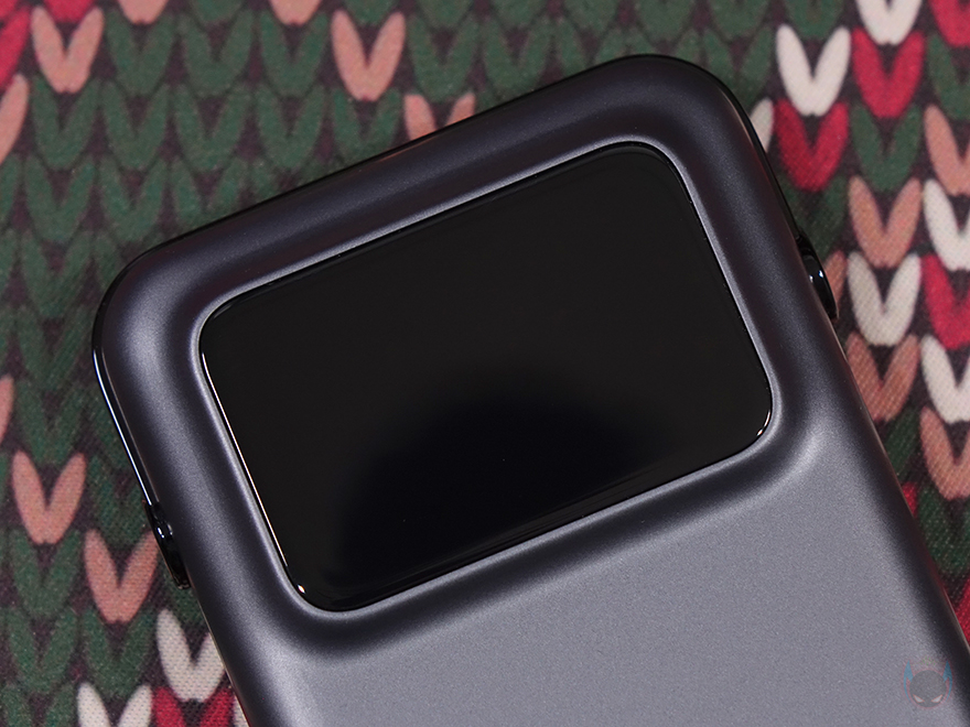 그럼, 유그린의 Uno 30W 보조배터리를 살펴보면, 슬림한 바(Bar) 형태로 스마트폰과 면적 크기를 비교해 보면, 좀 더 작습니다. 무게는 약 200g으로 스마트폰 무게와 비슷해 휴대에도 최적이죠. 그리고, 디자인에서 가장 먼저 눈에 들어오는 부분은 역시 스크린 화면 부분으로 개봉 시에는 보호비닐이 부착되어 있는데, 보호비닐에 이모티콘을 새겨놨습니다. 그리고, 화면 부분은 배터리보다 좀 더 앞으로 볼록하게 나온 형태로 제품을 세워서 보면 Uno 시리즈답게 로봇 캐릭터 감성을 줍니다.