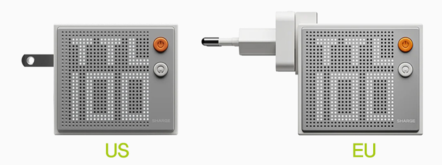 직접, SHARGE Pixel 140 충전기를 사용해 보면, 일단 충전기를 콘센트에 꽂으며, 바로 픽셀 스크린 화면이 켜집니다. 참고로, 콘센트 위치에 따라서 픽셀 스크린 화면은 조정이 가능한데, 필자 같은 경우에는 연장 콘센트에 꽂았기때문에, 좀 더 편한 방향으로 또다른 EU 플러그 어댑터를 사용했습니다. 참고로, EU 플러그 어댑터는 SHARGE 홈페이지에서도 별도 구매가 가능합니다. 좀 더 콘센트에 어울리는 위치에 충전기를 꽂았으면, 이제 전원버튼 아래에 있는 화면 회전 버튼을 통해 위치를 잡으면 됩니다. 화면 회전은 시계 방향으로 90˚씩 회전 위치합니다. 그리고, 전원 버튼을 통해서는 픽셀 LED 밝기조절을 할 수 있는데, 한 번 누르면 최대 밝기에서 좀 어두워지고, 또한번 누르면 Off가 되죠. 조금 아쉬운 점이라면 좀 더 밝기 단계가 많았으면 좋지 않았을까 생각이 듭니다. 또한, 앞서 언급했던 EU 플러그 모델 같은경우에는 US 플러그와 달리 플러그 연결부가 돌기형이라 완전히 US 플러그처럼 콘셉트 밀착되지는 않습니다. 따라서, 앞서 알려준 대로 콘셉트에 밀착하고 싶다면, US 플러그를 선택해서 별도의 EU 플러그 어댑터를 사용해야 합니다.