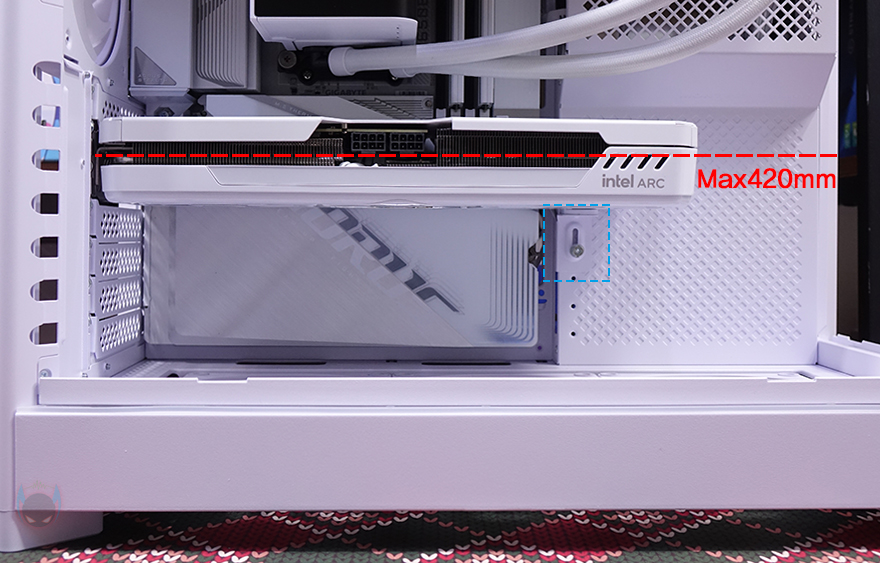 직접, 몬테크 HS02 PRO PC케이스를 사용해 시스템 조립을 해보면, 먼저 메인보드는 앞서 언급했듯이 M-ATX 메인보드를 장착할 때는 커버를 적용해 아래 빈 공간을 가려 깔끔하게 보이도록 해주며, 일명 BTF 메인보드인 백-커넥터 메인보드를 장착할 시에도 완벽하게 후면으로 커넥터가 통과되는 걸 확인할 수 있습니다. CPU 쿨러 같은 경우에는 타워형 공랭쿨러 장착시 최대 175mm 높이까지 지원하며, 수냉쿨러 장착 시에는 상단에 최대 360mm 라디에이터를 장착할 수 있습니다. 다만, 라디에이터 안쪽으로 공간이 협소하기때문에 라디에이터 팬이 데이지체인이 아닌 일반 케이블로 팬끼리 연결되어 있다면 바깥쪽으로 배치해서 장착해줘야합니다. 그래픽카드 같은경우에는 최대 420mm 길이까지 지원하기때문에 사실상 시중에 판매되는 그래픽카드는 모두 장착이 가능하고, 기본 수평방향 장착시에는 기본 제공되는 지지대를 사용해 처짐을 방지할 수 있습니다. 그리고, PCI 슬롯 전체 분리로 회전이 가능하기 때문에 수직방향으로도 그래픽카드를 장착할 수 있는데, 다만 이때는 별도의 라이저케이블과 지지대가 필요합니다. 파워서플라이는 앞서 언급했듯이 브래킷을 통해 ATX와 SFX 규격에 따라 장착할 수 있습니다. 브래킷 기본 장착이 ATX 기준으로 되어 있기 때문에, ATX 파워서플라이는 어렵지 않게 장착할 수 있고, SFX 파워서플라이를 장착할 경우에는 브래킷을 분리해서 SFX 규격 방향으로 전환해서 장착해줘야 하는데, 이때 브래킷 고정 시 앞쪽과 뒤쪽에도 각각 고정나사를 사용해줘야 합니다. 끝으로, 케이블 정리는 파워서플라이 자리 아랫공간과 메인보드 트레이 윗부분 허브 장치가 있는 공간을 활용해 정리할 수 있으며, 적당히 정리해도 최종적으로 커버를 장착하기 때문에 깔끔하게 보이도록 할 수 있습니다.