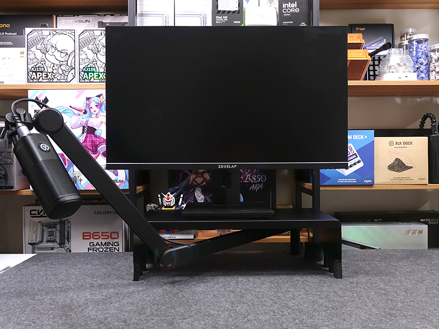 그럼, 웨이브 마이크암 MK.2를 오버헤드 또는 로우 프로파일 높이로 선택했을 때 가장 큰 이점은 무엇일까? 먼저 150mm 라이저를 사용해 오버헤드 높이로 사용하게 되면 데스크 공간이 협소한 경우에 모니터 후면에서 설치해 마이크를 앞으로 넘겨서도 자유롭게 움직일 수 있습니다. 특히, 이전 모델보다 길이가 더 길어졌기 때문에 좀 더 자유로워졌고, 수직 아래로 마이크를 배치할 수 있어서 목서리외에 키보드 타건이나 제품 언박싱 같은 주변 소음을 수음할 때도 마이크 위치 잡기가 유용하죠. 반대로 낮은 높이로 사용하는 로우 프로파일 같은 경우에는 개인공간 시 모니터에서 최대한 멀리 배치하거나 라이브 방송 같은 콘텐츠에서 최대한 길게 마이크를 배치할 때 유용합니다. 또한, 마이크를 세워서 사용하기에 편하기 때문에 토크 같은 목소리 수음에 편하다 할 수 있죠. 개인 환경에 따라서는 모니터 선반 사용 시 선반 아래 공간으로도 통과시킬 수 있지만, 클램프 높이가 77mm이기 때문에 최소 하단 공간 높이가 80mm 이상을 되어야 합니다. 이는 다른 로우 프로파일 마이크암을 사용할 때도 마찬가지죠. 필자 같은 경우에는 개인공간으로 사용하기 때문에 오버헤드가 더 편했습니다.