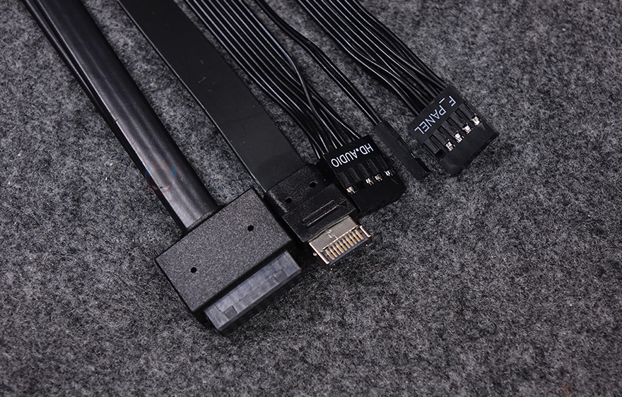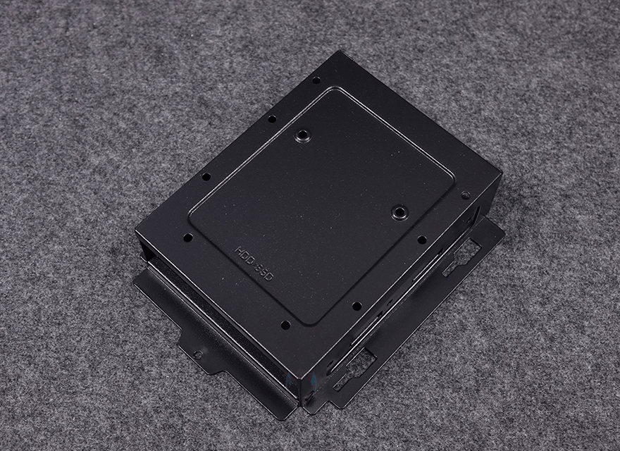 이번엔 메인보드 트레이 후면을 살펴보면, 후면에는 케이블 정리를 할 수 있는 클램프 방식의 홀더 장치가 적용되어 기본 케이블들을 정리해 놨습니다. 그리고, 클램프 바로 왼쪽에는 2.5인치 HDD/SSD 2개를 장착할 수 있게 나사홀이 적용되어 있죠. 같은 위치 맨 아래 하단 공간에는 저장장치 베이(Storage Bay)가 장착되어 있는데, 손나사(Hand screw)를 풀면 쉽게 베이를 분리할 수 있으며, 베이에는 안쪽에는 기본 3.5인치 HDD 1개를 장착할 수 있고, 베이 상단에는 추가로 3.5인치 HDD 1개 또는 2.5인치 HDD/SSD를 1개 장착할 수 있습니다. 물론, 3.5인치와 2.5인치 저장장치를 사용하지 않는다면, 분리해서 하단공간을 바로 뒤쪽 자리인 파워서플라이 케이블 정리공간으로도 확보할 수 있죠. 그리고, 하단 공간 뒷쪽 파워서플라이 자리에는 패드가 받침 역할과 함께 기본 부착되어 있으며, 버튼과 포트의 케이블들은 모두 정리가 수월한 플랫(Flat) 타입니다.