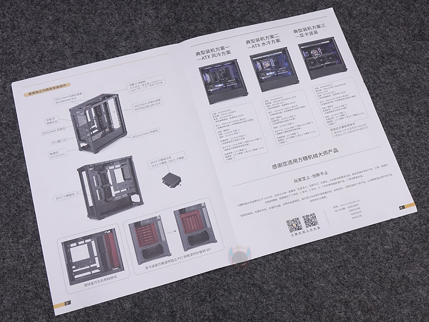박스를 열어보면, PC케이스 포장은 일반적인 비닐포장과 외부 충격보호를 위한 스티로폼 포장재를 사용했으며, D36 PC케이스를 제외한 나머지 구성품은 부속품이 담긴 별도의 박스 포장과 설명서로 이루어져 있는데, 제품 설명서는 모두 중국어로 표기해놨지만, 조립가이드를 모두 이미지로 담고 있어서 쉽게 이해가 됩니다. 부속품에는 부품 장착에 사용되는 각종 스크류들, 렌치 여분의 클램프, 케이블 정리에 사용할 수 있는 벨크로 타이와 소량의 케이블타이를 제공해 줍니다.