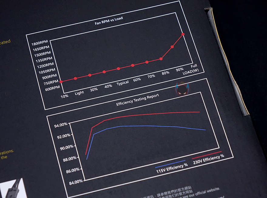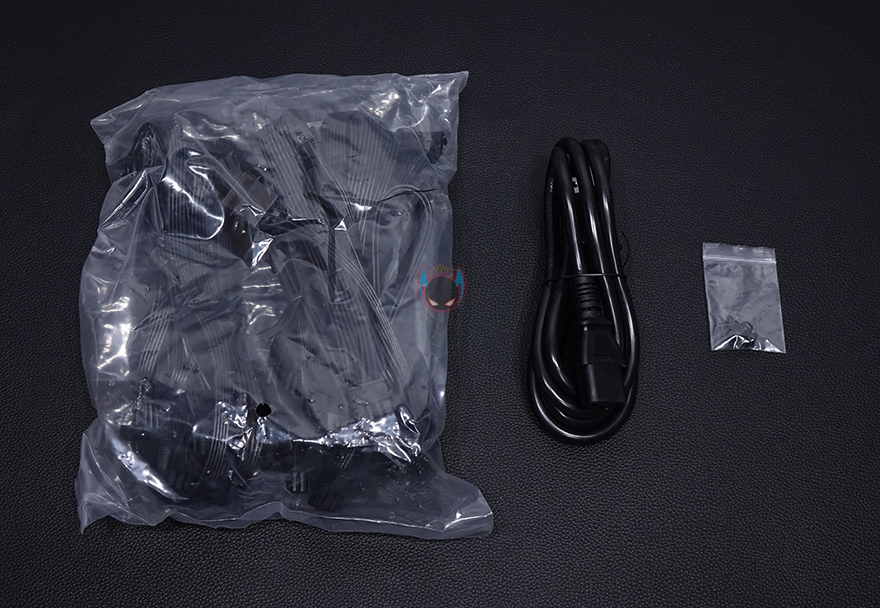 그리고, 박스 뒷면에는 제품의 주요 특징으로 80플러스 골드등급 인증, 풀-모듈러, 풀 LLC와 DC to DC 설계, 일본산 캐패시터 사용, 120mm FDB베어링 팬 사용을 언급하고 있으며, 커넥터 지원 개수와 팬 속도, 전력효율에 대한 표도 담고 있어서 전반적으로 구입 전에 제품의 정보를 충분히 얻을 수 있게 해줍니다. 또한, 제품 포장도 파워서플라이 본체는 비닐 포장과 외부 충격 방지와 흔들리지 않게 우레탄-폼으로 끼워 포장해놨으며, 풀-모듈러 방식이기 때문에 케이블들은 따로 파우치 가방에 보관되어 있으며, 케이블들도 다시 한 번 비닐 포장이 되어있고, 제품설명서, 전원케이블, 장착에 필요한 나사 제공으로 제품구성을 이루고 있습니다.