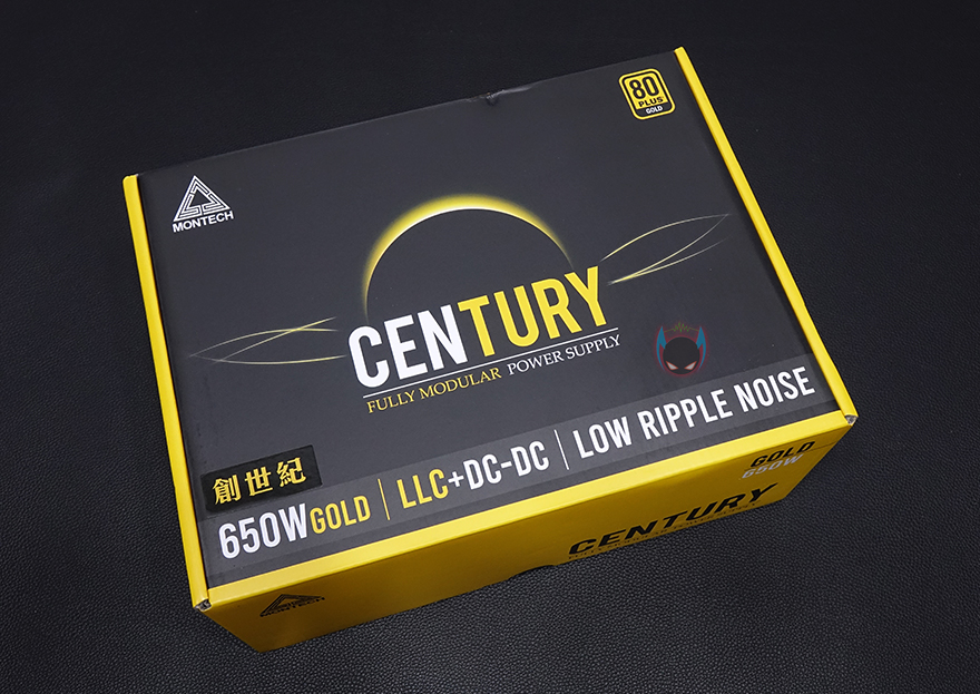 제품박스는 기본적으로 블랙색상에 포인트로 옐로우 색상을 조화시킨 디자인으로 박스 전체가 밀봉처리된 상태로 포장되어 있어서 소비자입장에서는 새제품임을 인지할 수 있어서 좋을 것 같고, 센추리(Century) 모델명과 함께 제품 특징 문구로 LLC 공진형 컨버터와 DC to DC 회로, 낮은 리플노이즈를 언급하고 있으며, 박스 측면에 좀 더 추가적인 특징과 반대쪽 측면에 제품의 기본 사양을 표기해놨습니다.