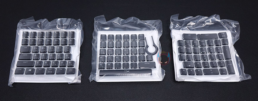 제품 구성은 별다른게 없고, 104키 풀-세트 키-캡으로 구성되어 있기때문에 총 3개의 포장으로 분류되어 있으며, 모두 흔들리지 않게 진공포장으로 처리되어 있습니다. 그리고, 키-캡 분리를 할 수 있게 리무버도 제공을 해줍니다.
