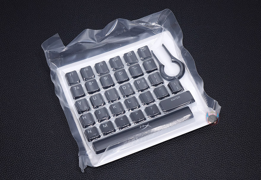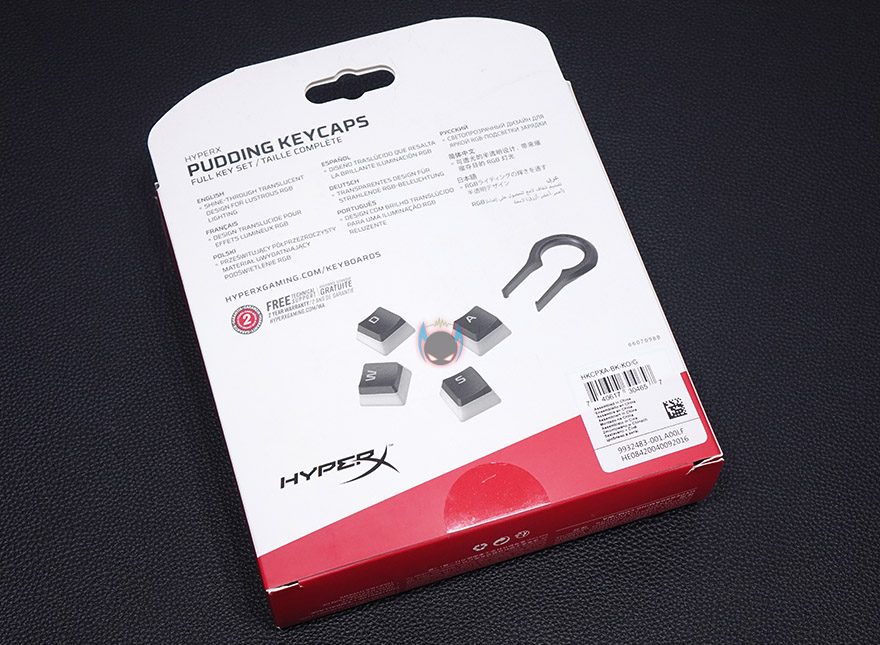 키보드 액세서리 제품이기때문에 특별한 건 없고, 액세서리 제품답게 박스에는 모델명과 제품 이미지를 담고 있어서 쉽게 푸딩 키-캡에 몰랐던 소비자도 쉽게 이해할 수 있겠습니다. HyperX에서 이 푸딩 키-캡을 출시한 이유는 초창기 HyperX의 Alloy 키보드 시리즈들이 우리가 흔히 보는 일반 키-캡 그러니깐 폰트부분만 백라이트 효과를 볼 수 있는 키-캡이었기때문에, 액세서리 이 푸딩 키-캡을 출시했는데, 자판별로도 판매되고 있어서, 초반에 HyperX 제품들이 영문 자판으로 판매되고 있어서 영문 자판을 구입했던 소비자들에게는 한글 자판으로도 변경할 수 있는 추가 이득이 있다 할 수 있겠습니다.
