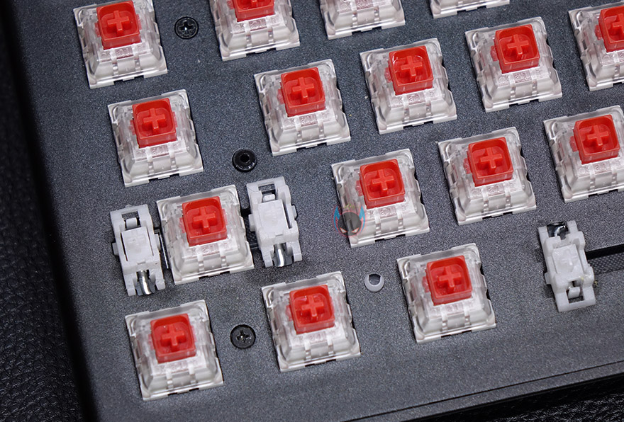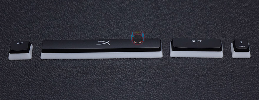 HyperX 푸딩 키-캡을 디자인을 살펴보면, 기존의 이미 키보드 덕후들이 애용하던 푸딩 디자인을 그대로 반영하기 때문에 특별한 건 없는데, 푸딩이라는 것이 반반 디자인으로 윗부분은 우리가 흔히 백라이트 키보드에서 볼 수 있는 폰트부분만 백라이트를 투과하는 디자인으로 처리되어 있고, 나머지 아랫부분은 전체효과를 볼 수 있게 반투명으로 처리된 것이 푸딩 키-캡의 디자인입니다. 그리고, 기계식키보드 스위치에 맞게 키-캡 안쪽은 +자 모양의 홈으로 처리되어 있기때문에, 꼭 HyperX의 Alloy 키보드 시리즈가 아니더라도 기존 체리스위치나 +자 모양의 스위치를 갖춘 키보드면 대부분 호환 사용이 가능하겠습니다. 재질은 ABS 재질입니다.
