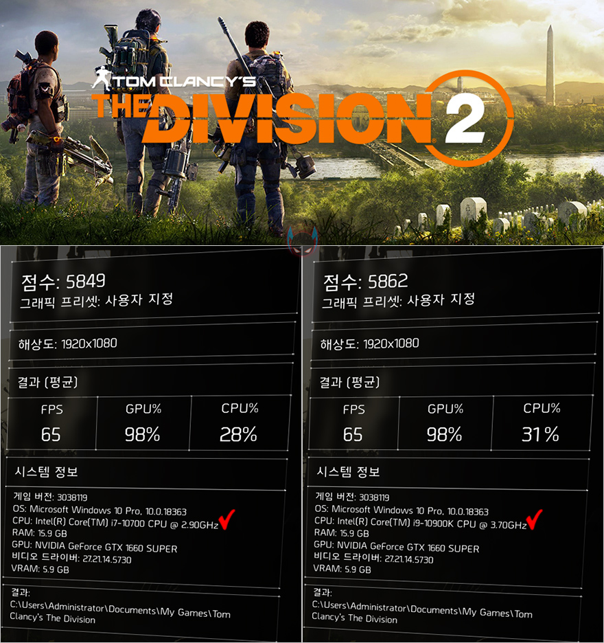 인텔 i9-10900K CPU의 성능은 게임에서도 그 입증을 해주는데, 다이렉트X 12기반 게임 4종의 프레임 벤치마크를 실행해보면, 게임마다 프레임 차이는 각기 다르지만, i7-10700 CPU보다 i9-10900K CPU를 사용했을 때 전반적으로 프레임이 더 높게 나오는 것을 확인할 수 있습니다. 물론, 게임마다 CPU영햐을 받는 것은 모두 다르기 때문에, 어떤 게임에서 얼마만큼의 CPU 코어와 클럭을 사용하는가에 따라서 체감은 다르다 할 수 있습니다.