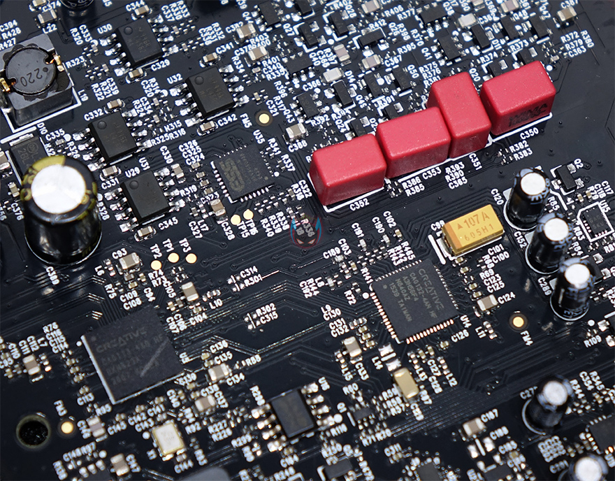 사운드블라스터X AE-5 Plus 메탈 커버를 분리해서 내부 PCB기판 부분을 살펴보면, 칩셋 및 DAC, 캐패시터 부분들이 이전 AE-5 모델과 동일한 구성인 것을 확인할 수 있습니다. 이미 시작에서 가장 큰 차이점은 인코딩 지원이라고 언급을 했었죠. 사실상 인코딩 지원을 제외하면 동일한 사양입니다. 그래도, 눈에 띄는 점은 측면 네이밍부분의 라이팅효과를 위한 LED처리가 이전 AE-5 모델에선 사운드카드 PCB기판 자체에 SMD를 바로 적용한 형태였는데, 이번 AE-5 Plus 모델에선 따로 분리해서 SMD PCB기판을 사용했습니다. 이렇게하면 아무래도 나중에 LED부분에 문제가 생겨도 수리하기가 한결 수월해질 수 있죠.