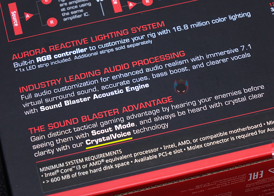사운드블라스터X AE-5 Plus의 제품박스는 기존에 먼저 나왔던 AE-5 모델과 거의 동일합니다. 제품 이미지라든지 기존 모델에서 지원하던 기술이나 기능들 표기를 그대로 표기해놨다라는거죠. 물론, 모델명이 다르고, 제품의 주요 특징에서 돌비 오디오와 DTS 지원이 추가되었다라는 표기도 새롭게 확인할 수 있습니다. 그리고, 국내에는 최근 CPU와 메인보드 유통사로 유명한 피씨디렉트 업체에서 Creative 제품들도 유통을 시작하고 있어서, 정품 스티커도 확인할 수 있습니다.