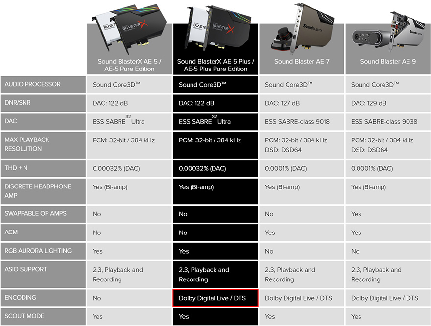 인코딩 기능이 추가되면서 업그레이드로 출시된 크리에이티브의 사운드블라스터X AE-5 Plus 사운드카드는 나름 사운드에 관심이 많았던 분들에게는 반가운 모델입니다. 이전 AE-5 모델에서 인코딩 기능이 없었기 때문에, 상위 모델인 사운드블라스터 AE-7, 9를 가격부담을 안고 선택할 수 밖에 없었기 때문이죠. 물론, 상위 모델인만큼 더 고급화된 사운드 제공을 해줍니다. 하지만, 굳이 상위모델까지 선택할 필요가 없는 소비자일경우 그래도 자신이 가지고 있는 스피커나 헤드셋을 고려해 인코딩 기능까지 있는 내장 사운드카드를 바라는 경우가 있기때문에 이런 분들에게는 이제 사운드블라스터X AE-5 Plus가 최상의 선택이 될 수 있습니다. 가격도 이전 AE-5 모델과 차이가 없으니깐요. 그래서, 크리에이티브는 일부 해외기준에서 자사 홈페이지에서 직접 구입한 AE-5 소비자 한해서 90일안에 제품을 반납해주면, AE-5 Plus로 바꿔주는 정책을 해주고 있습니다. 물론, 인코딩 기능을 제외하면 이전 AE-5 모델과 사실상 나머지 부분들은 차이가 없기 때문에, 자신이 갖추고 있는 사운드 환경에 따라서 AE-5냐 AE-5 Plus냐 선택을 하면 됩니다. 하지만, 국내에서도 가격에서 차이가 없기때문에 기왕이면 앞으로 사운드환경이 바뀔 수도 있는 점을 고려하면 처음부터 인코딩 기능까지 추가된 사운드블라스터X AE-5 Plus를 선택하는 것이 현명하다 할 수 있겠죠. 그럼, 이만 마치겠습니다.