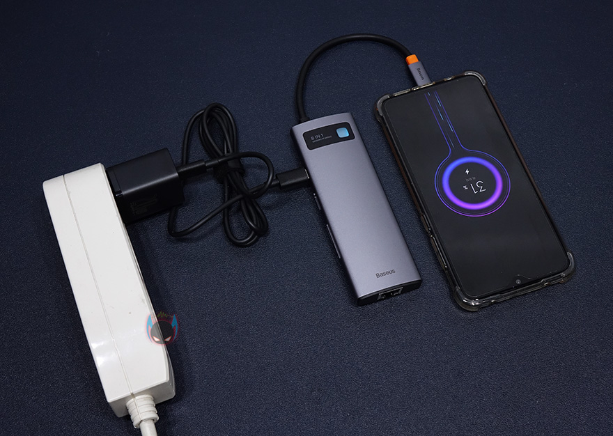 그리고, 앞서 USB Type-C 포트가 충전 지원도 함께 갖추고 있다고 했는데, 충전 기능으로 사용하고 싶은 때는 USB Type-C 포트를 충전어댑터와 연결하고, 본체에 달린 USB Type-C 케이블을 모바일기기나 보조배터리에 연결하면, 충전기능이 작동됩니다. PD 100W까지 고속충전을 지원하기 때문에 노트북, 태블릿PC, 스마트폰 등 왠만한 고속충전 지원 제품들은 다 사용이 가능하다고 보면 되겠습니다.