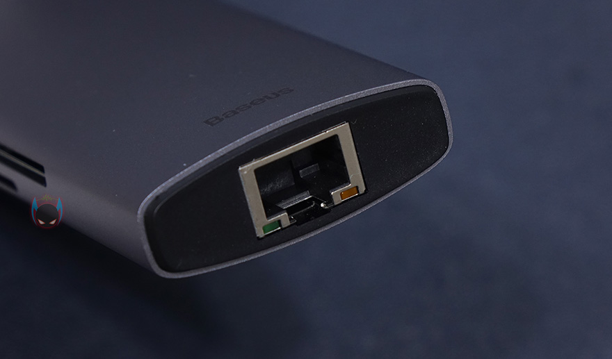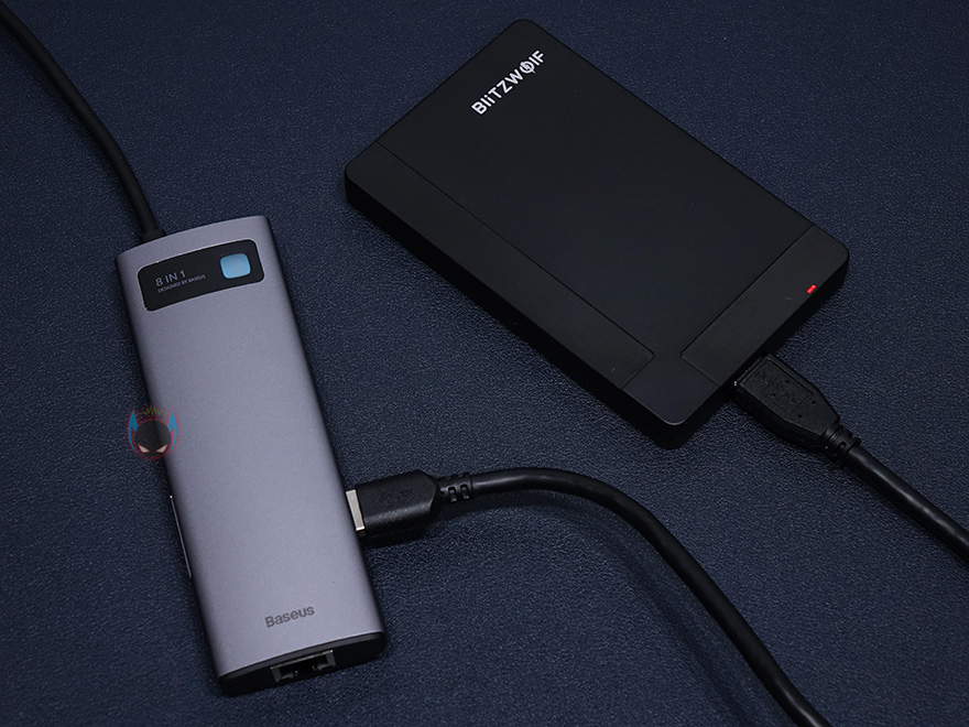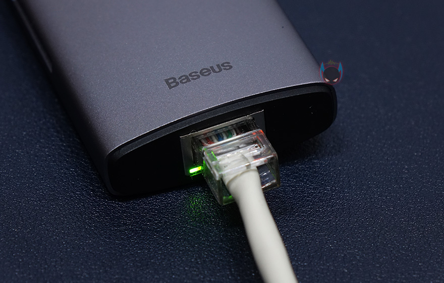 그럼, 실제로 베이스어스 메탈 글림 시리즈 USB 허브를 사용해봐야겠죠. 노트북이나 모바일기기에 있는 USB Type-C 포트에 허브를 연결하면 바로 사용이 가능합니다. 블루색상의 LED 램프로 작동상태를 바로 알 수 있죠. USB 포트와 카드리더기가 있기 때문에, 기본적으로는 일반적인 USB 메모리 허브 역할을 합니다. 물론, 외장HDD/SSD 같은 제품들도 연결해서 사용할 수 있죠. 또한, 만약 노트북에 랜 포트 지원이 USB 어댑터 방식으로 지원한다면, 이 베이스어스 메탈 글림으로 교체하면 랜 포트 어댑터 역할뿐만 아니라 방금 언급한 USB 메모리 허브와 카드리더기까지 확장으로 사용할 수 있어서, 이 제품이 나온 가장 최적의 요건이라고 할 수 있습니다.