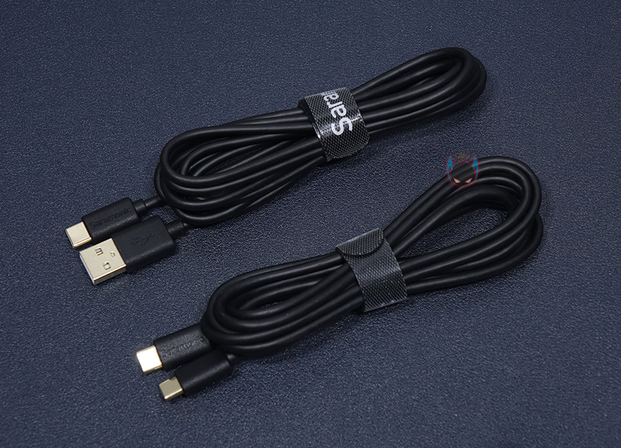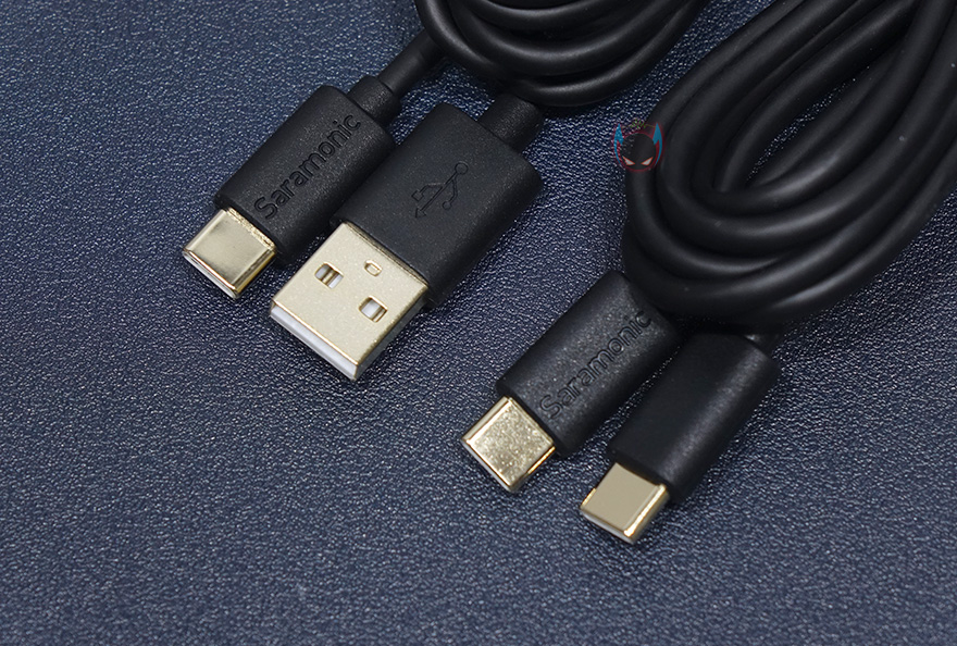 마이크를 받치고 있는 베이스와 스탠드 연결부는 마그네틱 방식으로 분리와 장착이 간단해서 편리합니다. 물론, 전용 스탠드에 사용할 때만 마그네틱 방식이고, 외부 마이크 붐 암-스탠드 같은 장치에 사용할 때는 원래 방식인 나사방식을 지원하기 때문에 연결부 안쪽에 나사홀이 처리된 것을 확인할 수 있습니다. 그리고, 원래 사이즈는 5/8" 스크류지만, 외부 스탠드 연결을 위해 앞서 구성품에서 본 3/5" 스크류 변환어댑터도 제공해주고 있습니다. 그래서, 외부 스탠드 호환은 걱정할 필요가 없고, 전용 스탠드는 메탈 재질로 무게감이 있으며, 밑바닥부분에는 미끄럼방지를 위해 전체가 패드처리 되어있죠. 끝으로, 제공되는 2개의 USB 케이블은 둘 다 2m 길이를 가졌으며, 마이크를 연결할 기기에 맞추서 USB Type-A 또는 Type-C로 선택하면 되는데, 일반적으로 Type-A는 PC용, Type-C는 모바일용이라 생각하면 됩니다. 그리고, 신호손실을 최소화하도록 두 케이블 모두 USB 인터페이스에 금도금처리를 해놨습니다.