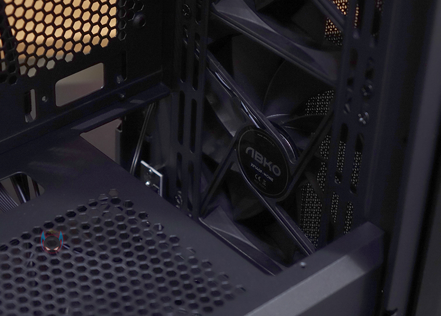 또한, 전면 베젤은 바로 분리가 가능한데, 분리해서 안쪽을 확인해보면, 오른쪽 맨 아래 구석에 RGB효과를 보여주기 위한 LED 바(Bar)와 케이블 없이 접촉되는 접지방식의 PCB기판이 적용된 것을 확인할 수 있습니다. 보통 이런장치는 해외브랜드의 고급형 PC케이스에서 볼 수 있기때문에, 앱코가 이 제품에 꽤나 신경을 많이 썼다라는 것을 느낄 수 있는 부분이라 할 수 있습니다. PCB기판에 보면 LED-바와 연결되는 케이블도 확인할 수 있죠. 실제, 메탈패널까지 분리하면 내부에 LED-바가 들어있는 것을 확인할 수 있습니다. 또한, 전면 베젤을 분리했을 때, 전면 내부에 140mm 팬이 3개 장착된 것도 확인할 수 있죠. 요즘 PC케이스가 대부분 전면에 RGB 팬을 적용하는 경우가 많은데, P2000 퍼포먼스는 LED-바를 적용했기때문에 일반 140mm 팬을 적용한겁니다.
