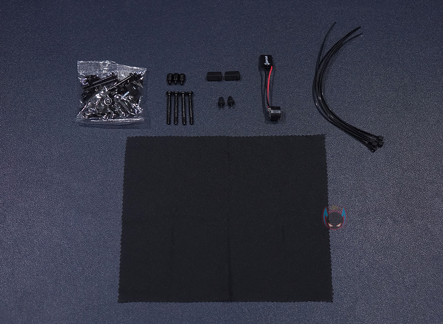 제품박스부터 살펴보면, 전후면과 좌우측면 각각 동일한 디자인으로 전후면에는 모델명과 함께 제품의 주요 특징으로 강화유리, 기본 팬 4개, ARGB VGA 지지대, 6핀 RGB 허브, USB Type-C 포트를 표기해놨으며, P2000 퍼포먼스 경우 슈트마스터에서도 P시리즈 모델로 시작에서 언급했듯이 P1000 모델에 이어 두 번째 P시리즈 모델입니다. 그리고, 이 P시리즈는 슈트마스터에서도 고급형 속한다라는 것을 시리즈 표기로 짐작할 수 있죠. 이 밖에 색상구분으로 블랙과 화이트 표시를 확인할 수 있으며, 케이스 포장은 일반 스티로폼보다 좀 더 충격방지에 좋은 우레탄-폼을 사용했는데, 이런 포장재 역시 이 제품이 고급형이라 신경썼다라는 것을 알 수 있죠. 케이스를 비롯해 구성품은 부속품박스와 제품설명서로 이루어져 있으며, 부속품에는 부품장착에 필요한 각 종 스크류와 USB 포트 마개, 오디오 마개, 비프음 스피커, 소량의 케이블타이, 그리고, 클린-천을 제공해주고 있습니다.
