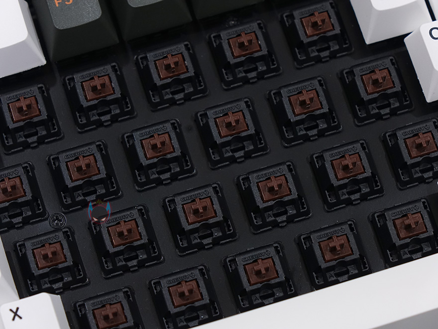 스위치는 앞서 확인했듯이 체리사의 MX 스위치를 사용하고, 총 7가지 타입 중 소비자가 선택할 수 있습니다. 리뷰에 사용된 제품의 스위치는 체리MX 갈축으로 청축과 적축 중간의 특성을 그대로 보여주고, 동시입력 키도 지원되는 것을 확인할 수 있었습니다.