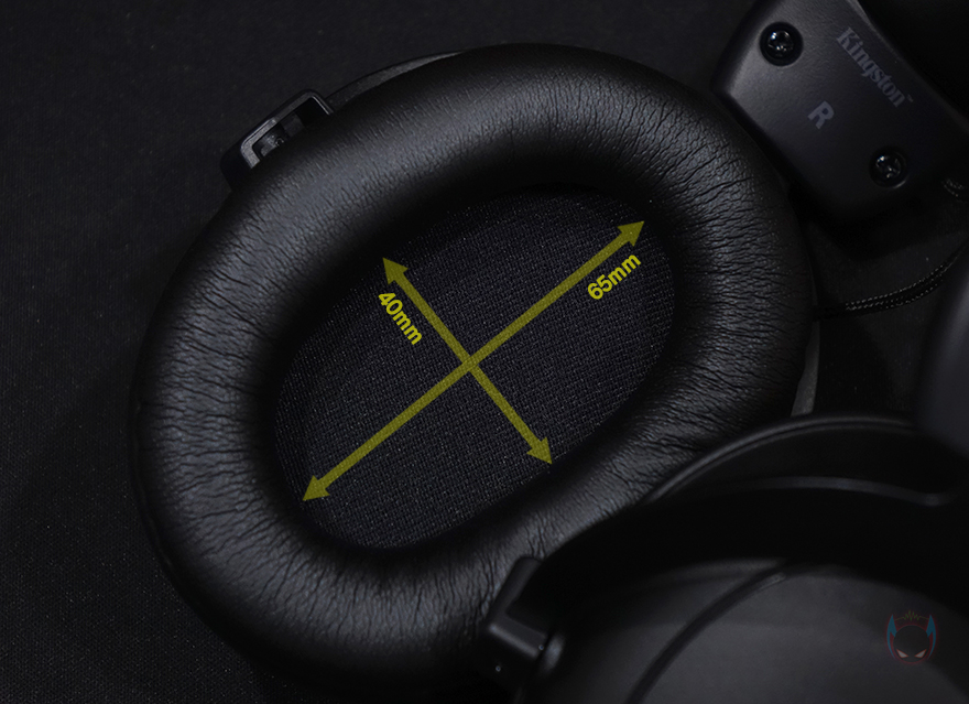 이어-컵은 착용시 자동으로 각도조절이 되도록 처리되어 있으며, 왼쪽 이어-컵에는 분리형 마이크와 연결되는 포트를 비롯해, 충전케이블와 연결되는 USB Type-C포트, 마이크 On/Off 버튼, 전원버튼, 무선 연결상태를 확인할 수 있는 LED 인디케이터가 적용되어 있습니다. 기존의 유선 모델은 가상 7.1채널 지원으로 케이블에 컨트롤 리모컨이 있었죠. 이어-패드 역시 인조가죽과 함께 쿠션처리를 해놨으며, 귀를 완전히 덮는 밀폐형입니다. 쿠션 안쪽 면적은 약 65x40mm이며, 내부에는 53mm 네오디윰 드라이버 유닛이 탑재되어 있으며, 임피던스는 먼저 나온 클라우드2 무선과 동일한 60Ω입니다.