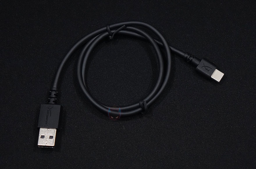 분리형 마이크는 노이즈 캔슬링이 적용되어 있으며, 양방향 지향성 마이크로 기존 제품들처럼 착용 사용자의 입 위치에 맞게 자유롭게 구부릴 수 있는 플렉시블 형태입니다. 그리고, 충전케이블은 약 60cm 길이를 가졌으며, USB Type-A to C 인터페이스를 가졌으며, 마지막으로 무선시 사용되는 2.4GHz 동글이는 기존 하이퍼엑스 무선 제품들의 동글이와 동일한 디자인을 가지고 있습니다.