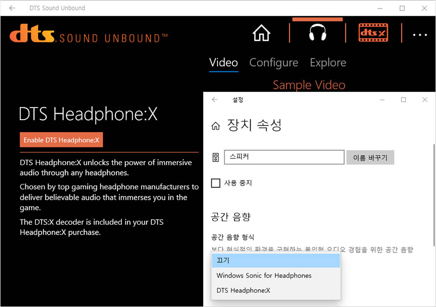 무선 버전으로 출시하면서 새롭게 추가된 DTS Headphone:X는 가상 7.1채널 사운드보다 더 많은 최대 11.1채널 서라운드를 제공해주기때문에 더 입체적인 사운드를 들려줄 수 있는데, 제공되는 DTS Sound Unbound 소프트웨어를 활성화 해서 DTS Headphone:X 기능을 활성화 시켜주면 됩니다. 또한, 소프트웨어 자체에서 DTS Headphone:X On/Off 했을 때 체감을 들려주는 샘플 영상을 비롯해 균형있게 들려주는 Balanced모드와 콘서트 같은 넓은 공간으로 들려주는 Spacious모드 선택을 할 수 있으며, 공간 사운드 탐색 조절도 할 수 있습니다. 참고로, DTS Headphone:X Off는 DTS Sound Unbound 소프트웨어에서 할 수 없기때문에, On/Off 사용은 운영체제 사운드설정에서 이용하는게 좀 더 편리하겠습니다.